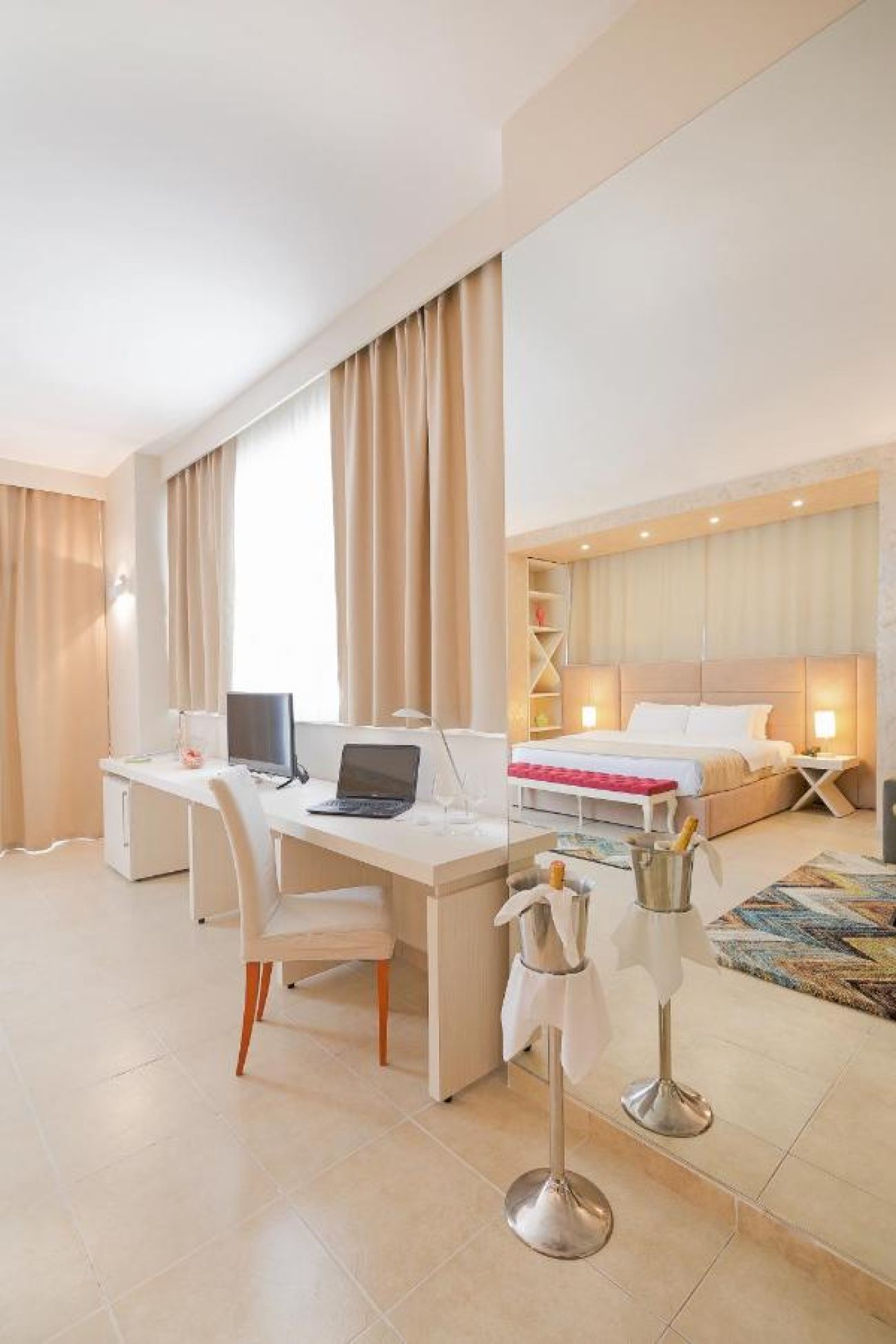 Във всяка стая има балкон, климатик, Wi-Fi, телевизор, телефон, минибар, сешоар.