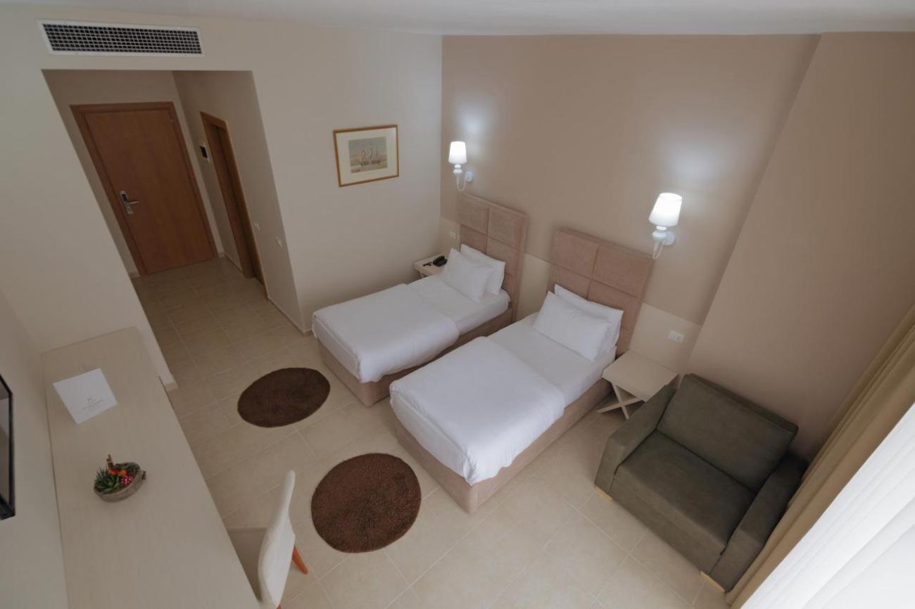 Oткритият хотел през 2017г. е на 100м. от плажа и на 7 км. от град Дуръс и пристанището.