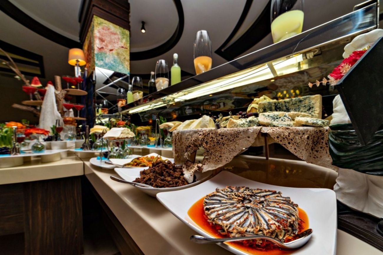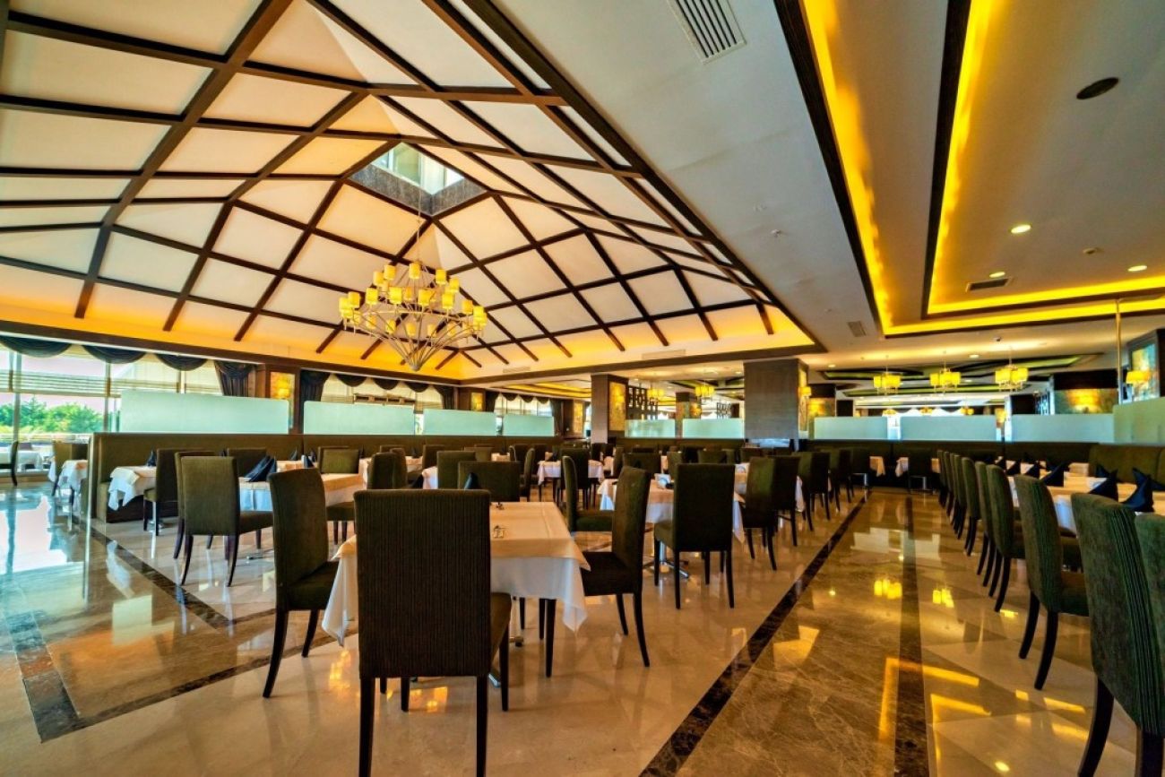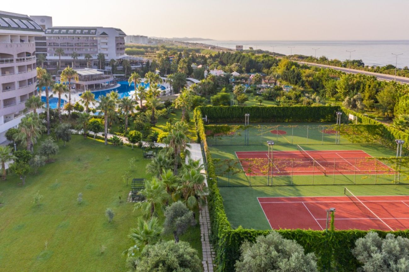 основен бюфет ресторант ( открита и закрита част), 3 а-ла-карт ресторанта : италиански, турски, азиатска кухня, снек бар, 5 бара, витамин бар с прясно изцедени плодови сокове, открит басейн, 4 водни пързалки, СПА център, фитнес център, тенис на маса, тенис на корт, анимация, тематични вечери, жива музика, WIFI в общите части и стаите, конферетни зали. Клиентите на хотела имат право на едно посещение на всеки от трите а-ла-карт ресторантите при престой от минимум 7 нощувки. Необходима е предварителна резервация за тях.