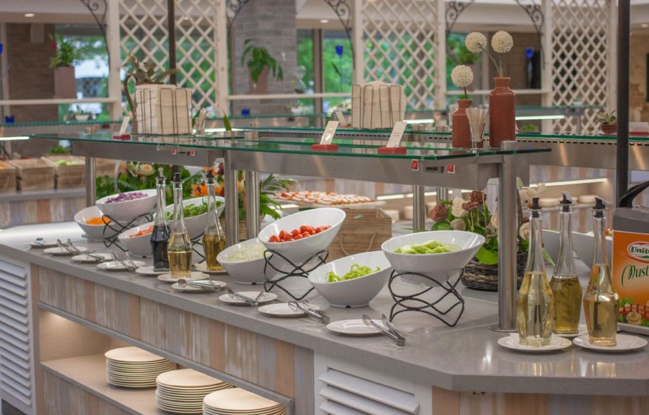 5-звезден ресторант с просторни тераси - шоу кукинг; здравословен бюфет; тематични бюфети; вегетариански, веган и безглутенови опции при предварителна заявка