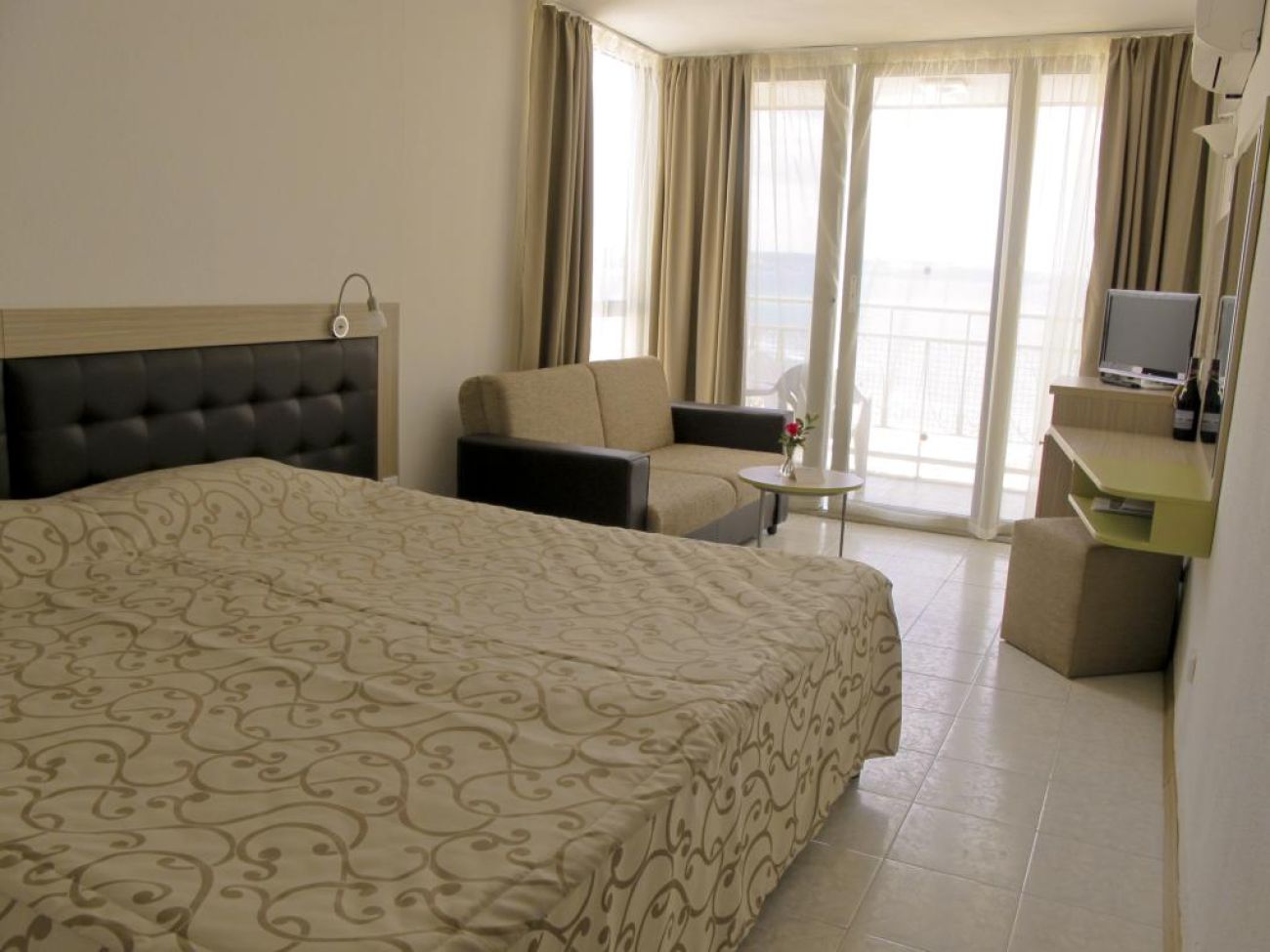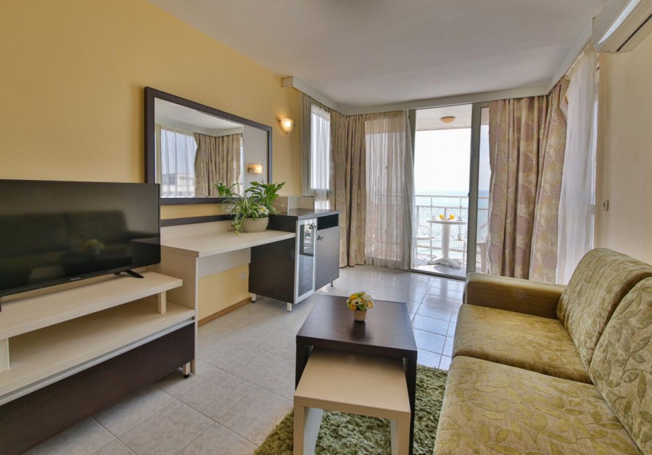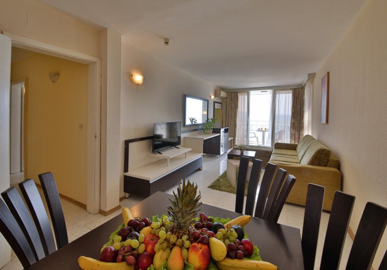 Двустаен апартамент(50 кв. м)- универсална комбинация от просторни спални и хол, оборудвани с мебели с модерен дизайн. Удивителен морски изглед. Настаняване 4 възрастни и 1 дете. Всички двустайни апартаменти са с морски изглед.