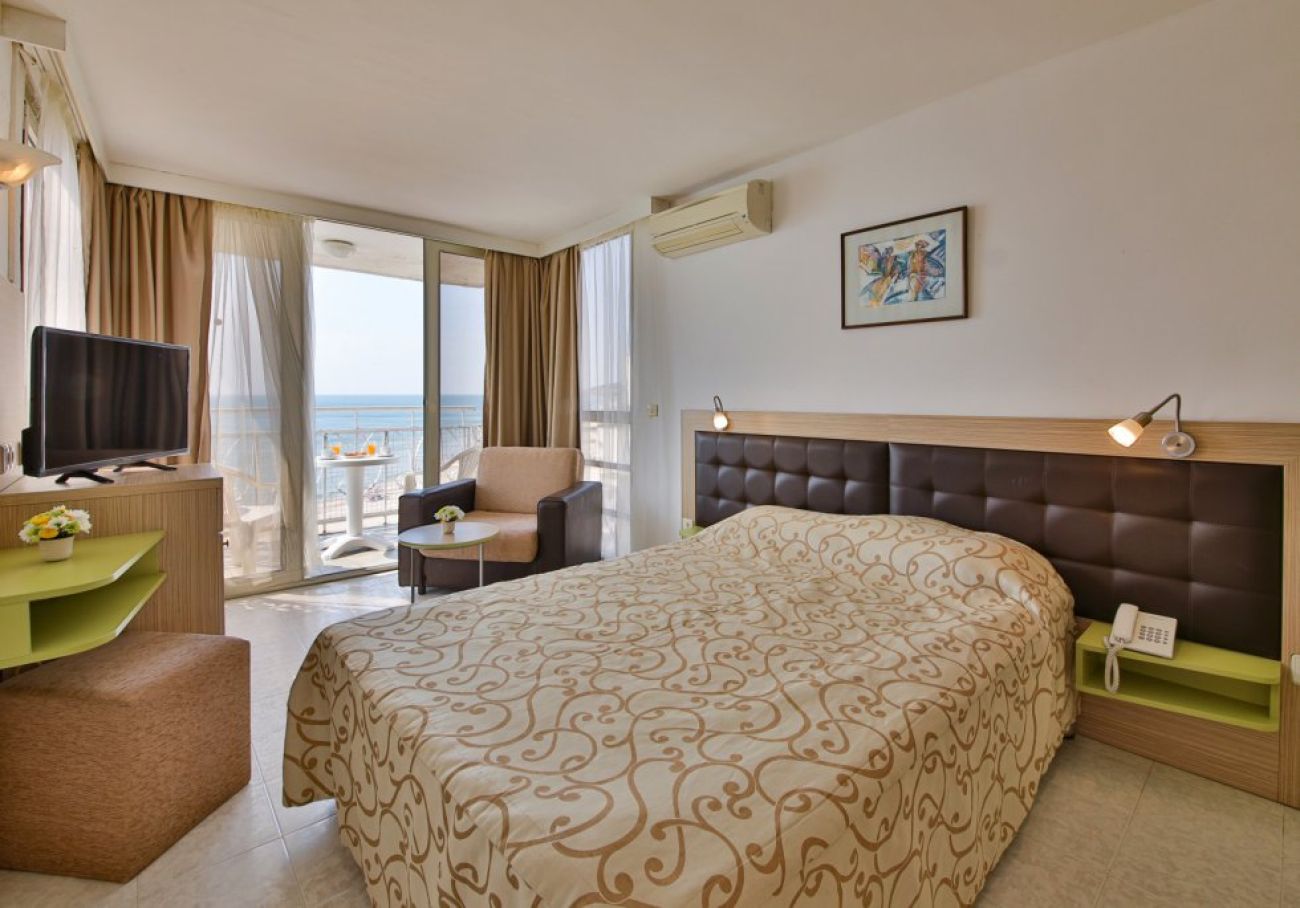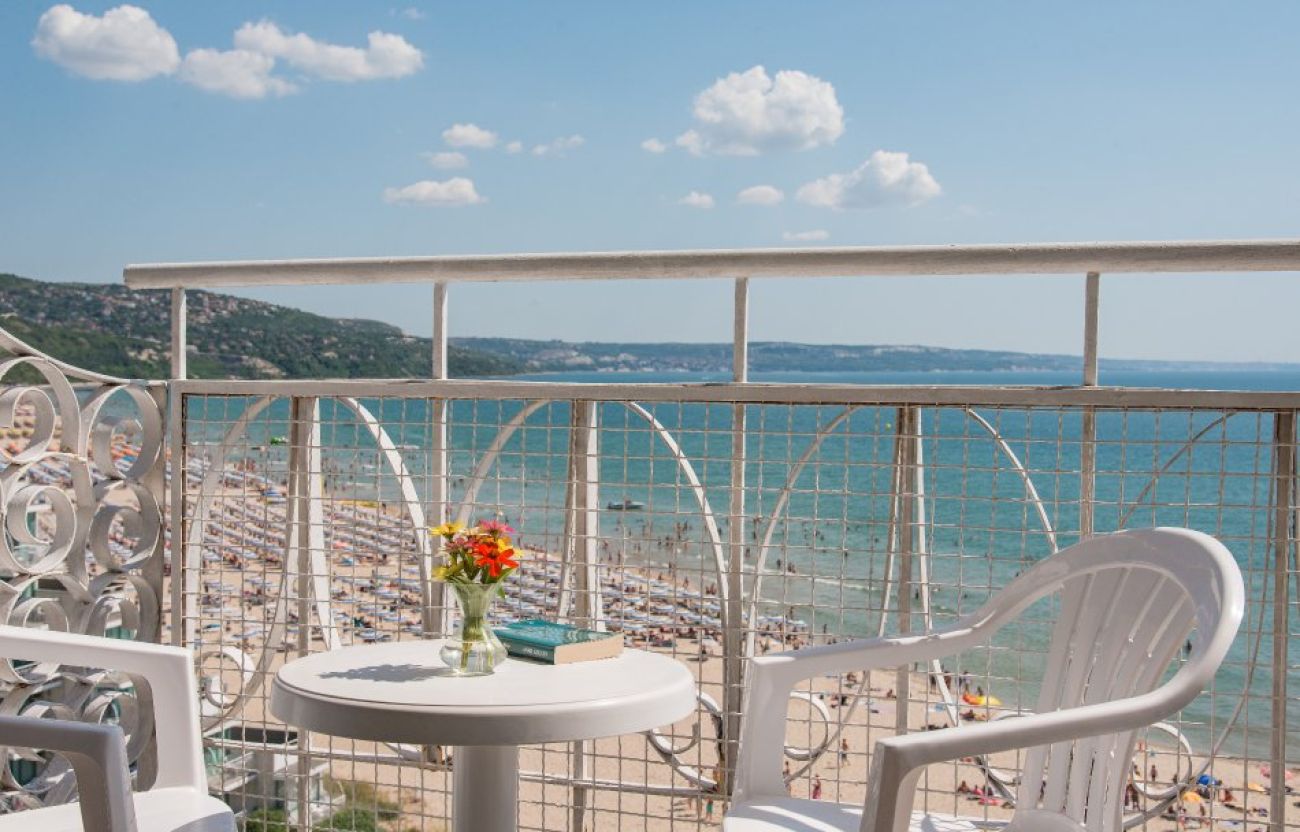 Стаи с морски изглед:(около 15 кв. м) - уютно и комфортно обзаведени с неповторима панорамна гледка към морето. По голямата част от стаите разполагат с две стандартни единични легла и разтегателен диван или едно френско легло тип спалня и едно единично легло. Някои от стаите са с междинна врата и двуетажни легла. Максимално настаняване на семейства: 3 възрастни и 1 дете или 2 възрастни и 2 деца.