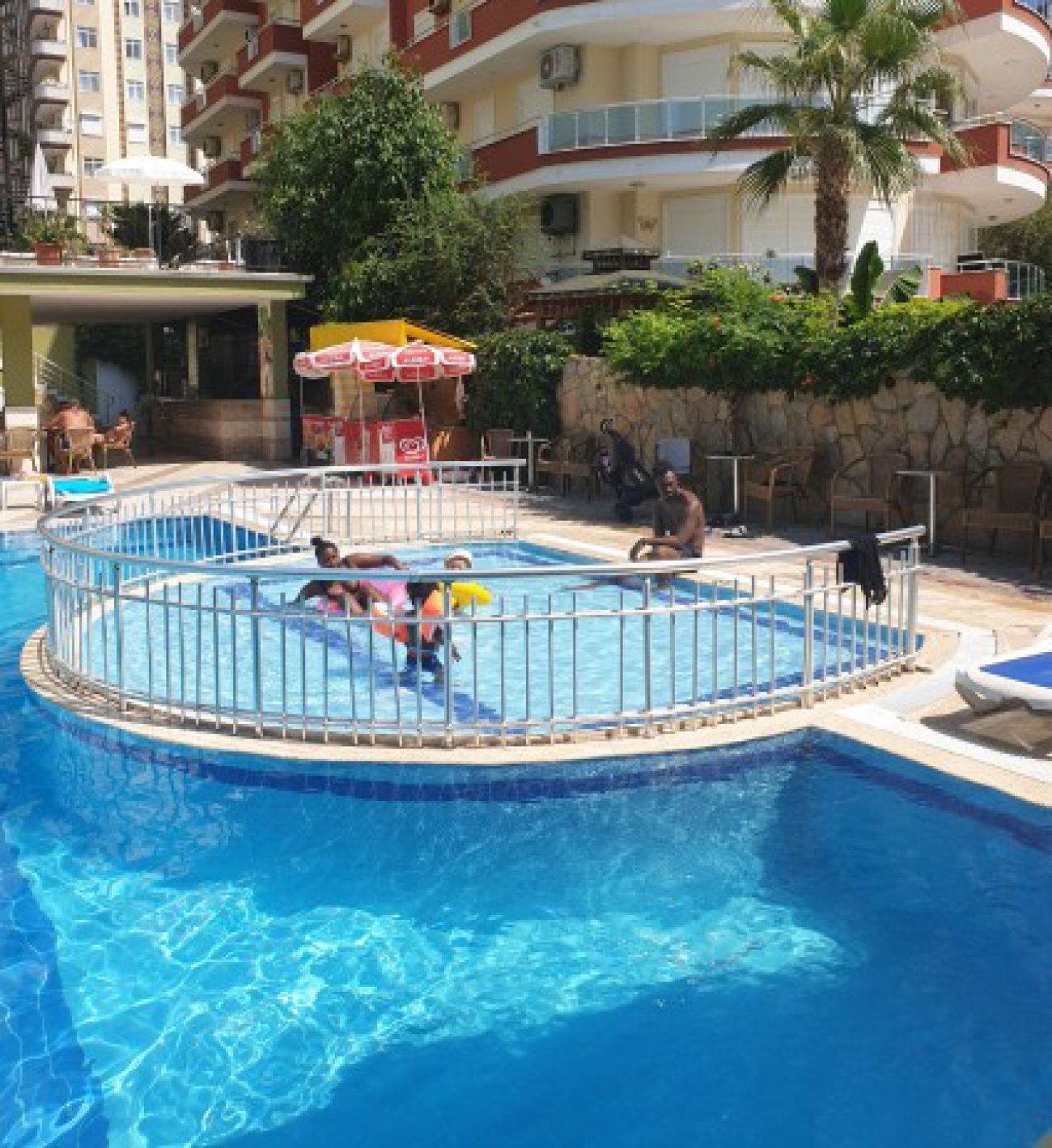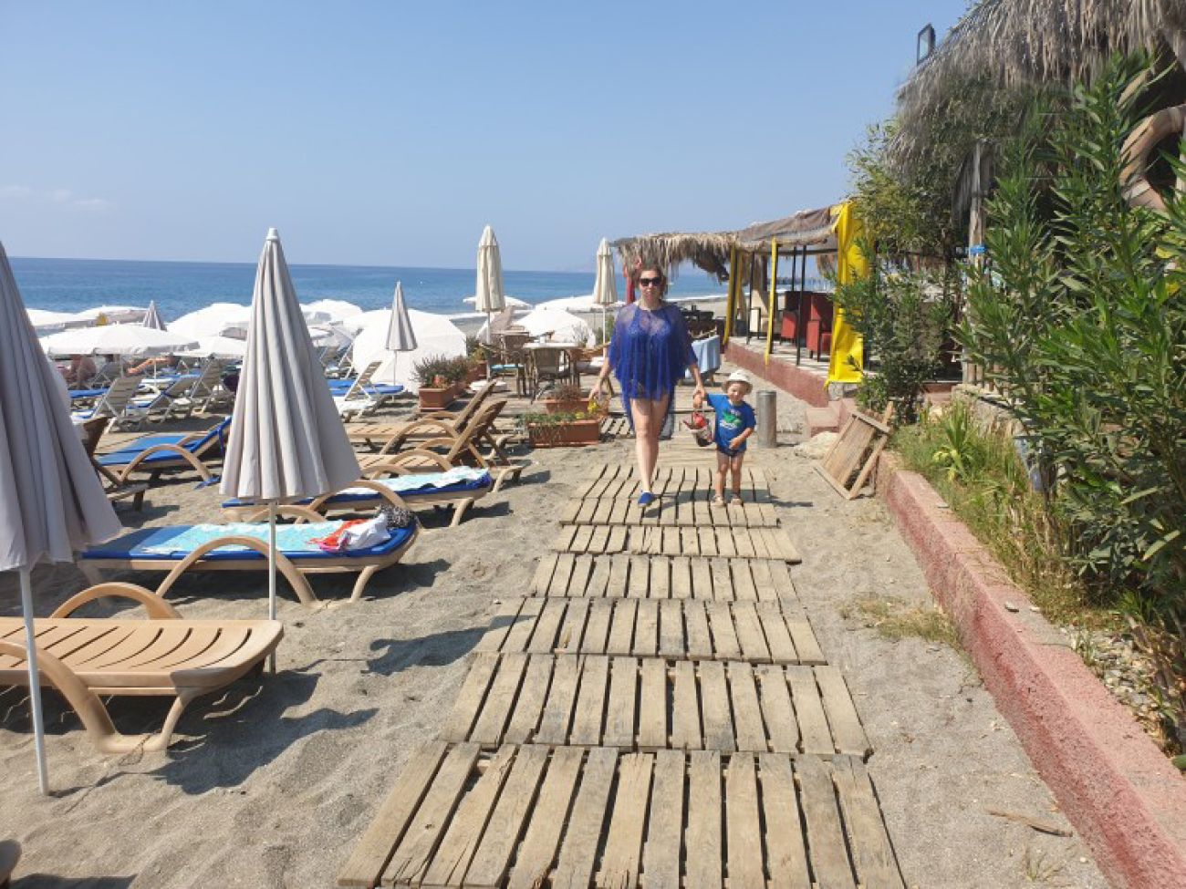 Плаж: градски, пясък/чакъл. Бар на плажа - (безалкохолни напитки безплатно). Чадъри, шезлонги - безплатно, матраци - платено. На басейна: чадъри, шезлонги, матраци - безплатно. Плажни кърпи: няма.