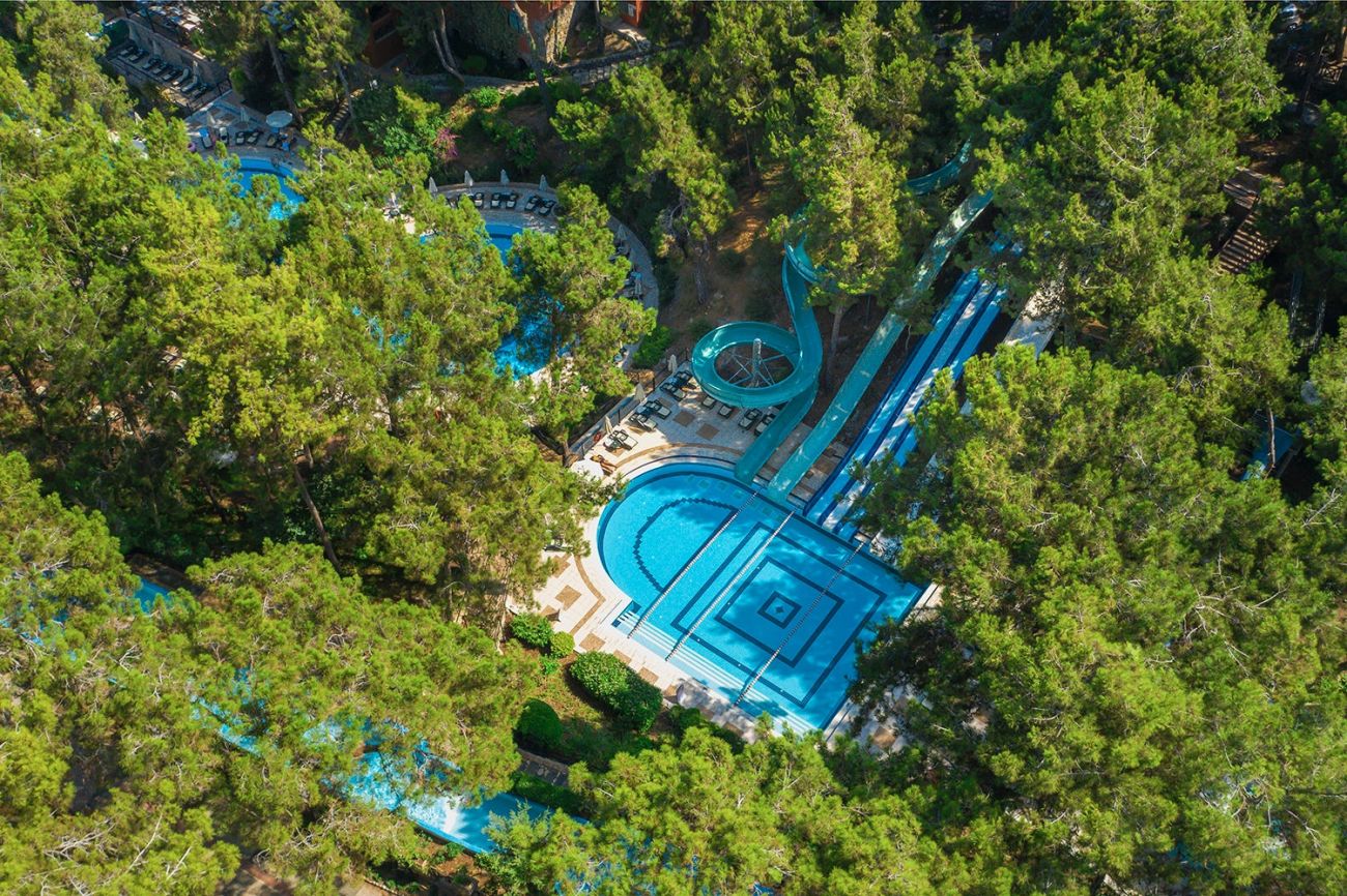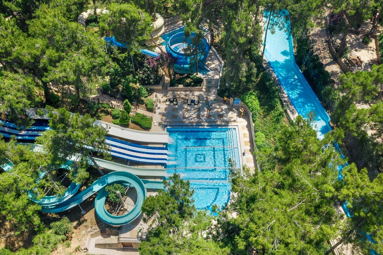 Детски бюфет, 3 детски басейна, 4 детски водни пързалки, детска площадка, мини клуб (4–12 год.), детска количка (платено), детегледачка (платено).