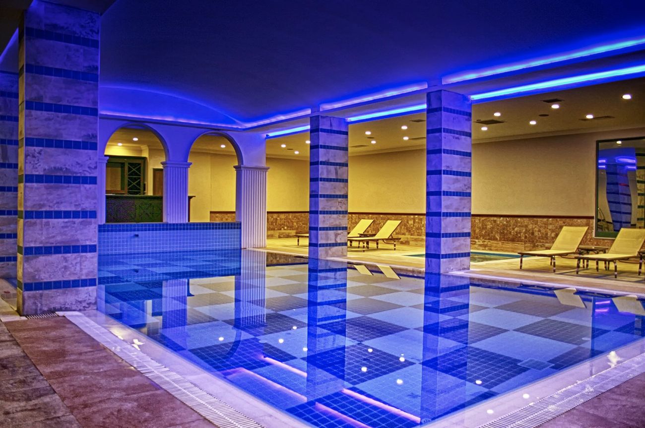 Турска баня, сауна, парна баня, джакузи, фитнес зала, водна гимнастика, волейбол, баскетбол, мини футбол, теннис корт с изкуствено, покритие, тенис ракети и топки под наем, тенис на маса, дартс, билярд, анимационна програма, музика на живо, дискотека, безжичен интернет (на цялата територия на хотела).