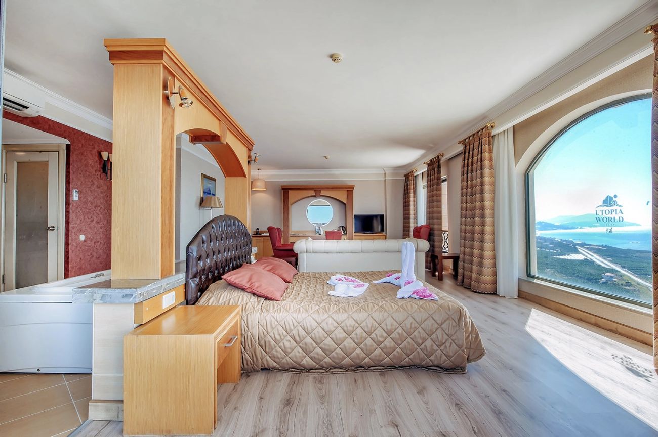 Стаите в Utopia World Hotel са оборудвани с баня с вана, сешоар, чехли, индивидуален климатик, телевизор, телефон, мини бар (вода и безалкохолни напитки, зареждане всеки ден, безплатно), сейф (безплатно), под – мокет или ламиниран паркет (основна сграда), теракот (вили), балкон, почистване на стаята – всеки ден, смяна на спалното бельо – 3 пъти седмично, room service (24 часа, платено), безжичен интернет (безплатно).