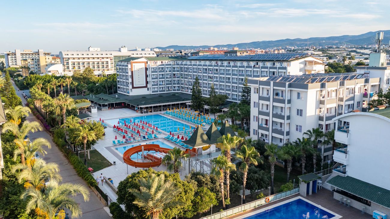 Намира се на 110 км от летище Анталия, на 120 км от центъра на Анталия, на 12км от центъра на Алания, на 1 км от селището Конаклъ, на 150 м от брега на морето. Построен 2005 г. на обща площ от 17 000 м2. Последно реновиран 2021г.