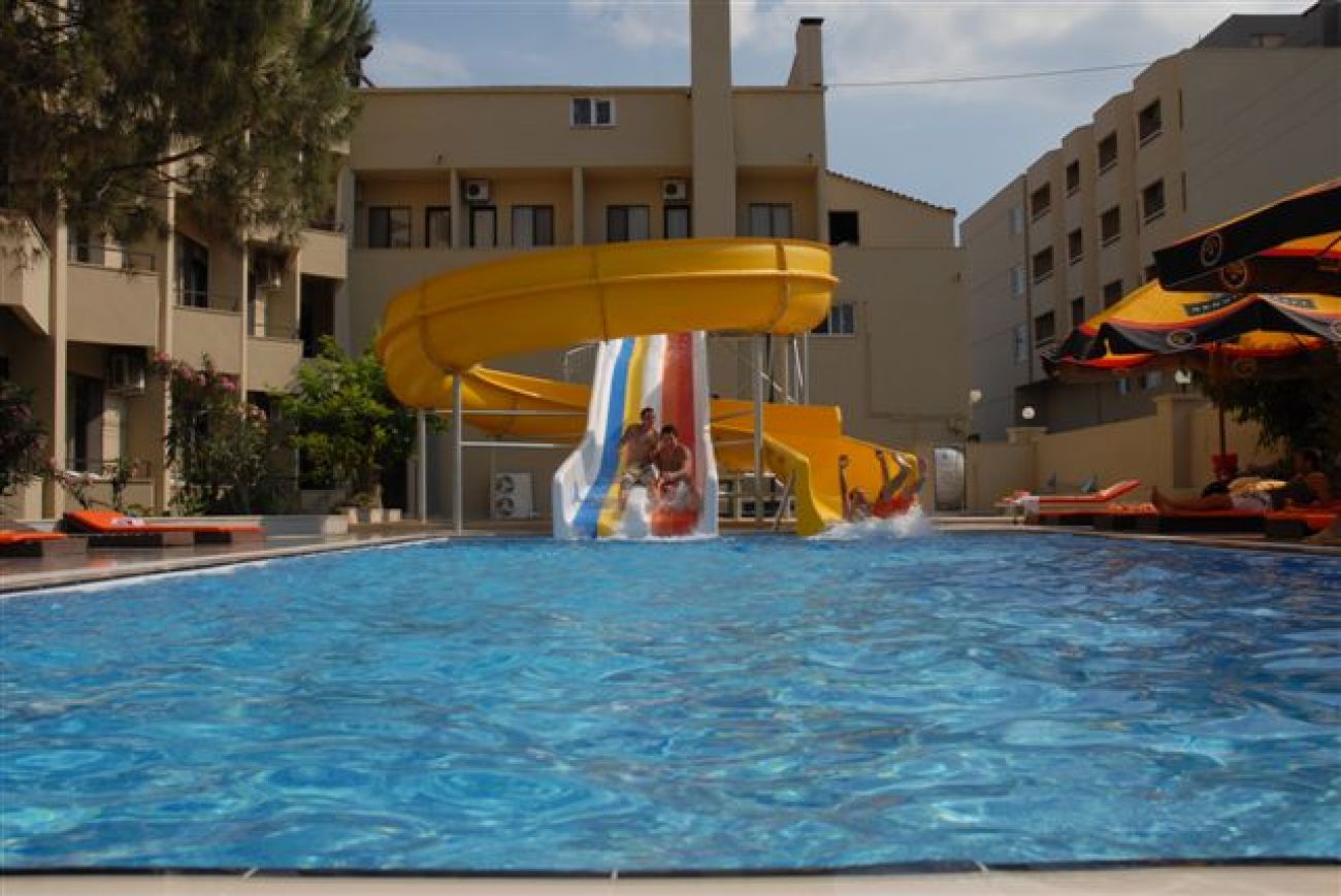 ресторант, лоби бар и бар на басейните, 2 открити басейна с водна пързалка, детски басейн, детска площадка, тенис на маса, фитнес център, сауна, турска баня, TV зала, интернет зала, WIFI интернет в лоби на хотела, чадъри и шезлонги на плажа, паркинг.