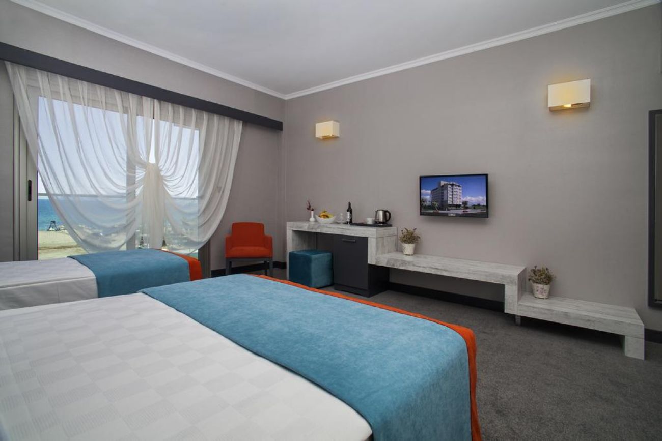 Хотелът разполага със стандартни двойни стаи с едно двойно и едно единично легло с гледка градина или море и фамилни стаи, които представляват две свързани стаи с врата, в едната стая двойно и единично легло, а в другата две единични легла, с една обща баня. Всички стаи в този хотел са оборудвани с климатик и телевизор с плосък екран. Собствените бани включват вана или душ. За удобство на гостите са осигурени безплатни тоалетни принадлежности и сешоар.