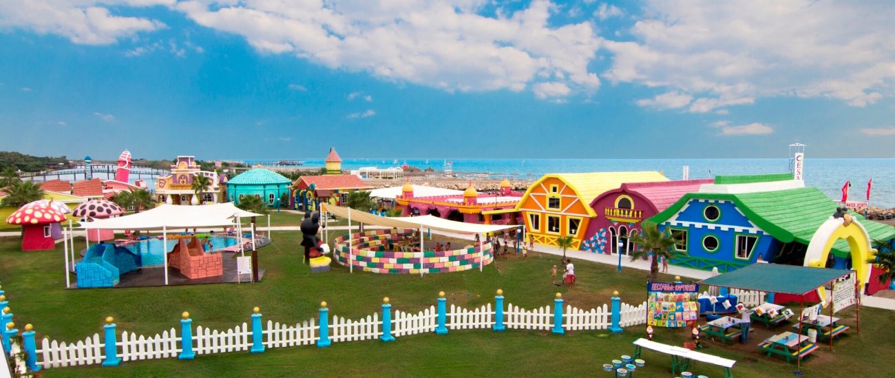 3 детски клуба 09:30-23:30 ч. (4-8 г., 9-12 г., 13-17 г.), детска площадка, детски пързалки, 4 открити детски басейна и 1 закрит, анимация, минидиско, детски бюфет, детегледачка (срещу заплащане), бебешка количка (срещу заплащане).