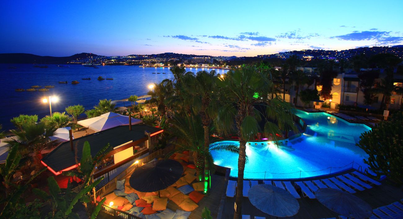 Хотелът се намира на 40км от летище Милас, на 3км от центъра на Бодрум, в залива Гюмбет, на брега на морето. Построен през 1988 г. с обща площ от 20 000 м2. Последна частична реновация през 2018 г.