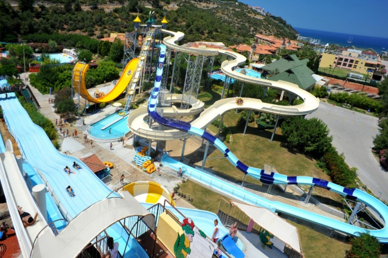 На разположение на гостите на хотела е един от най-големите аквапаркове в Турция. Аквапаркът разполага с 31 водни пързалки, от които няколко екстремни, басейн с вълни, подходящ за любителите на силни усещания. На разположение на по-малките деца е голяма детска зона с пиратски кораб и 6 пързалки. Основни правила за ползване на Аквапарка: Не се препоръчва за хора с физически увреждания, сърдечни оплаквания и бременни жени. Деца на възраст под 12 години трябва да бъдат придружени от възрастен. Не се допуска използването на някои от пързалките от деца с височина под 120 см. Всички деца под 3-годишна възраст се изискват да носят "swim" памперси. Консумацията на храни и напитки в аквапарка е срещу заплащане.