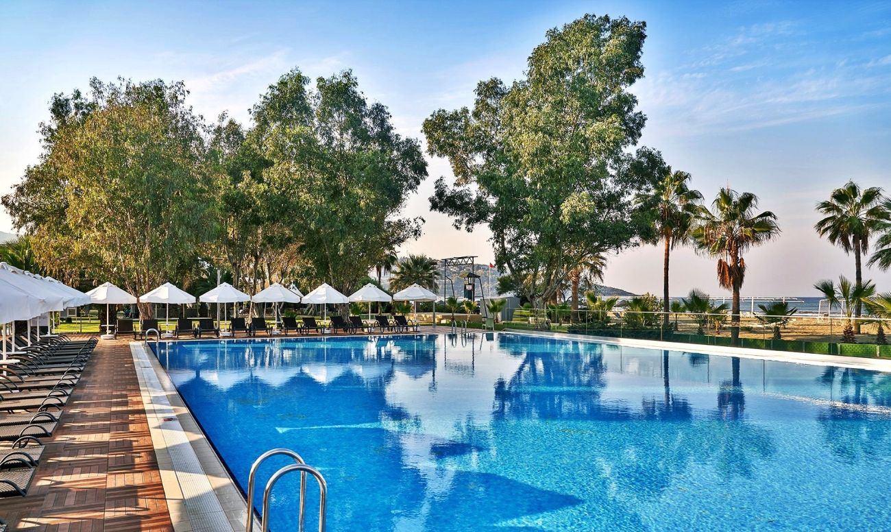 Хотелът се намира на 80 км от летище Измир, на 130 км от летище Милас, на 12 км от центъра на Кушадасъ, на брега на морето. Цялостно реновиран през 2014 г. Стаите в хотелската част са реновирани през 2017 г.
