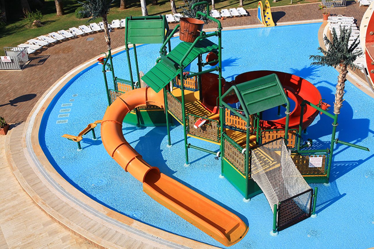 Детско меню, детско столче, условия за приготвяне на храна за бебе, детски басейн, детски пързалки, памперси за плуване (срещу заплащане), детска площадка, мини клуб (4-7 г. и 8-12 г.), тийн клуб (13-17 г.), мини кино, детска количка (с депозит/под наем).