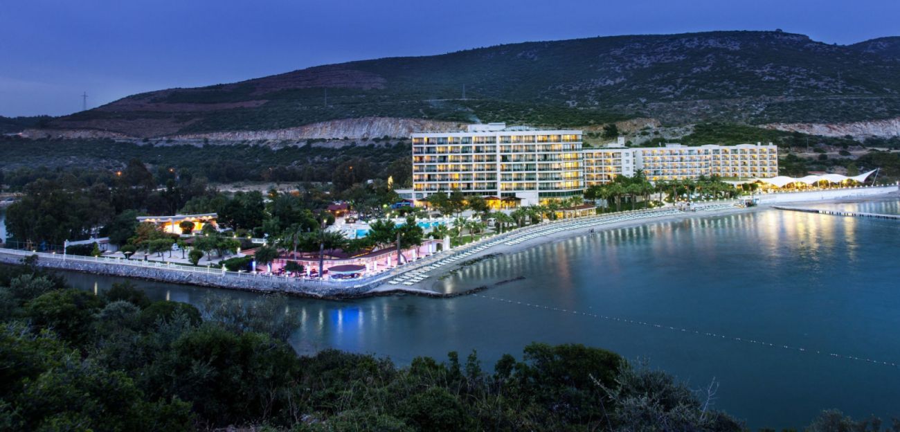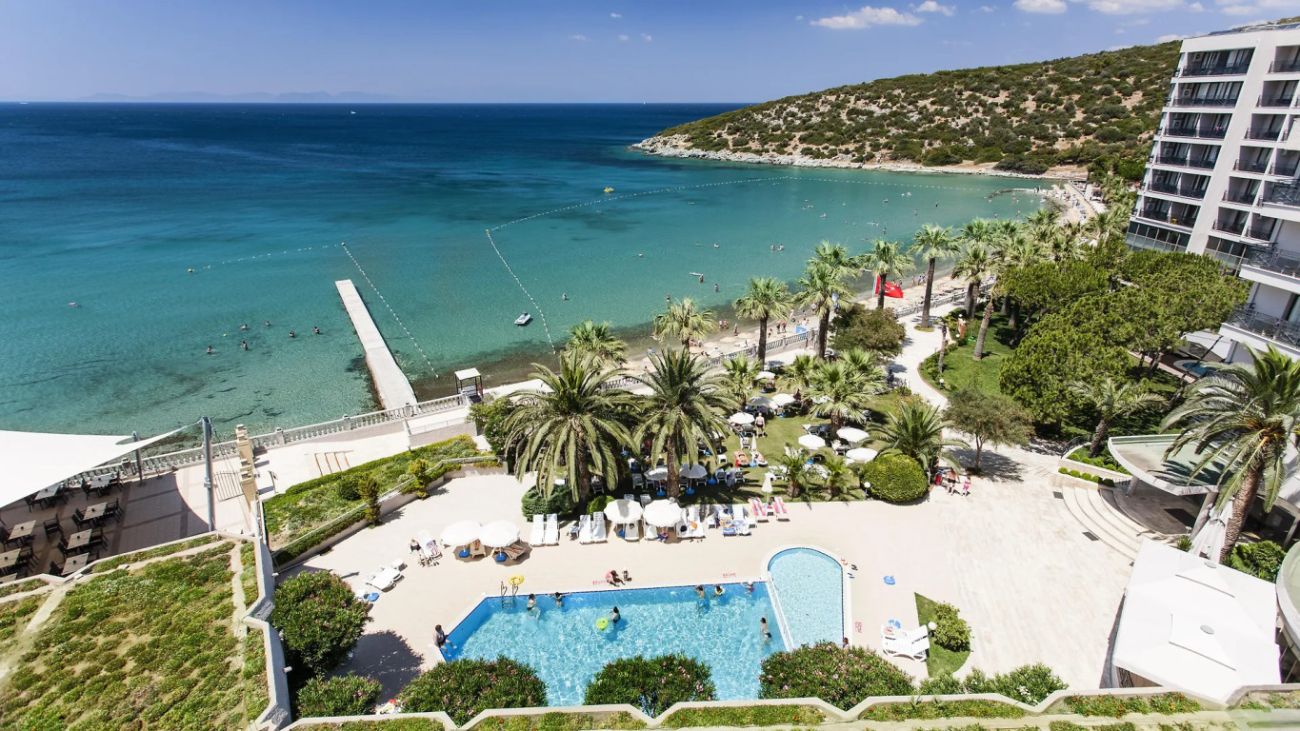 Хотелът се намира на 60 км от летище Измир, на 130 км от летище Милас, на 5 км от центъра на Кушадасъ, на брега на морето. Разположен сред градина с панорамна гледка към залива. Последно реновиран през 2014 г.