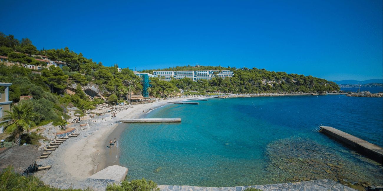 Хотелът е разположен на 65 км. от летище Измир, на 6 км. от центъра на Кушадасъ, на красив хълм, на брега на морето, в уединен залив.Собствен плаж.