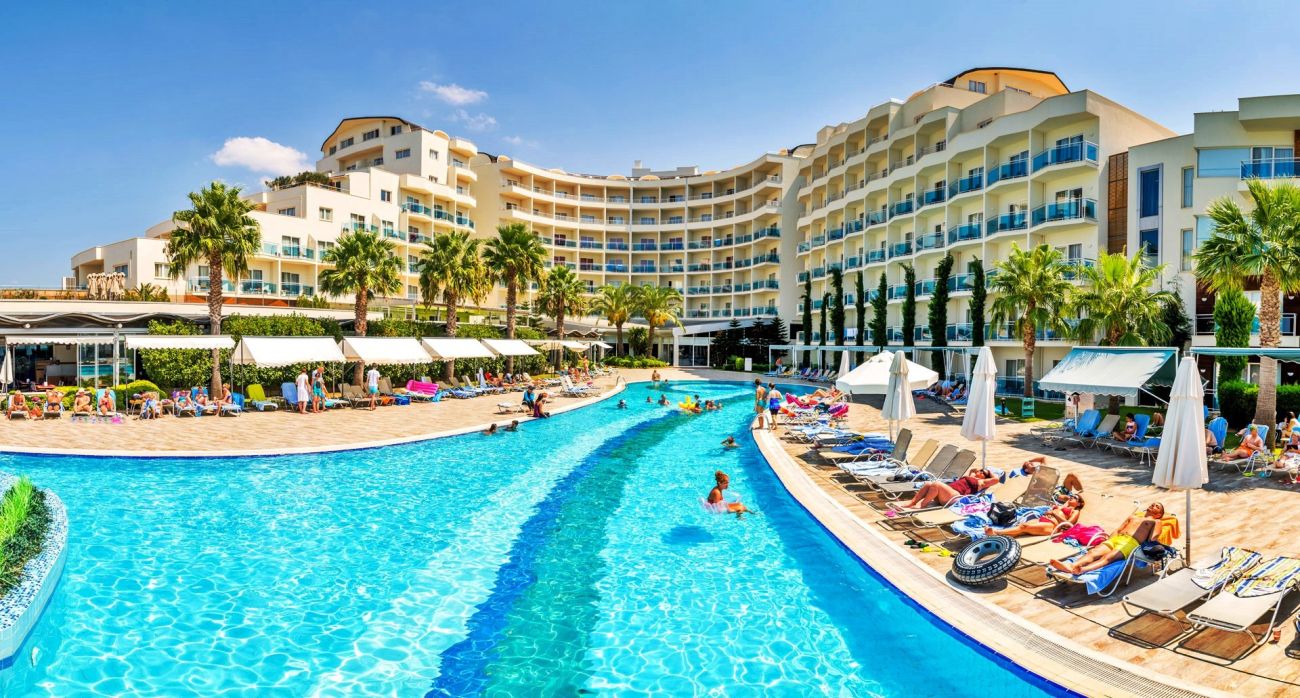 Хотелът се намира на 75 км от летище Измир, на 130 км от летище Милас, на 5 км от центъра на Кушадасъ, на брега на морето. Построен през 2007 г. на обща площ 38000 кв.м. Реновиран през 2018 г. Хотелът е разположен по протежение на безкрайния плаж на Егейско море, сред красиви зелени борови гори и чудесно озеленени градини.