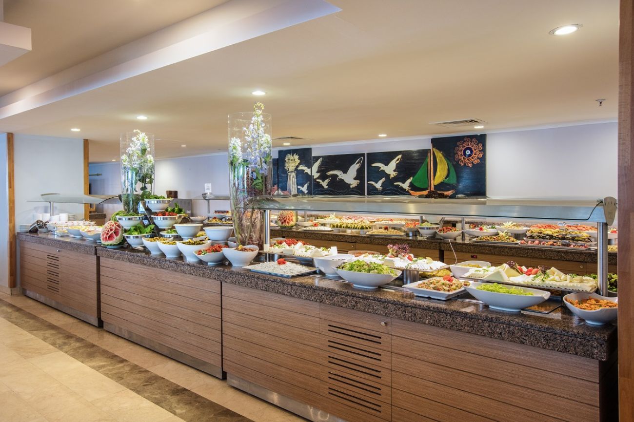 Хотелът разполага с основен ресторант, 5 а-ла карт ресторанта - DRAGON - азиарски ресторант (с предварителна резервация, безплатно при мин 7 нощувки), DOLCE VITA - средиземноморски ресторант /платен/, AGAIOS - рибен /платен/, KÜTÜK OCAKBAŞI - турски (с предварителна резервация, безплатно при мин 7 нощувки), MEXİ CASA - мексикански /с предварителна резервация, безплатно при мин 7 нощувки/, 7 бара, 2 снек бара, гюзлеме бар,1 открит басейн с прясна вода, 1 открит басейн с морска вода, басейн само за възрастни, закрит басейн с джакузи, СПА център, аквапарк, ТВ салон, магазини, конферентни зали.
