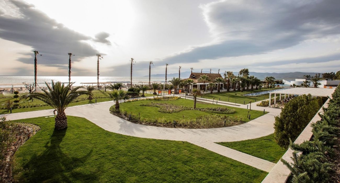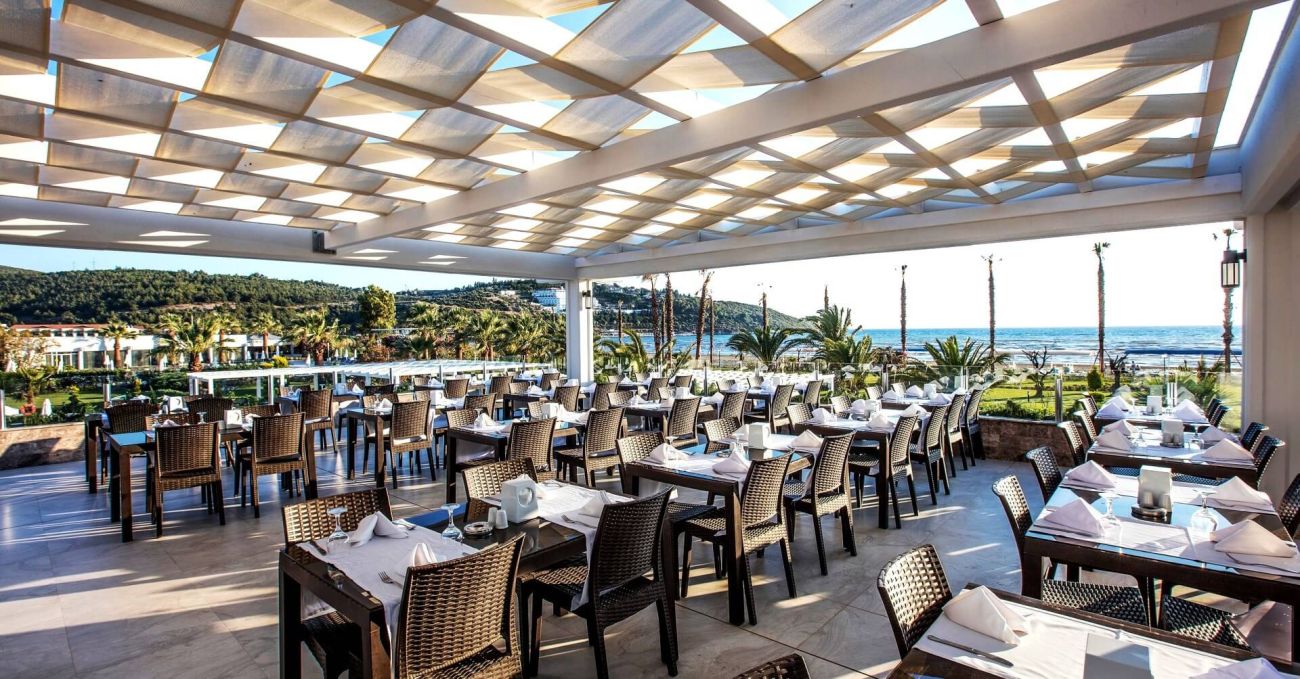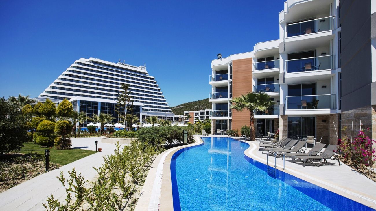 Хотел заема oбща площ от 54 000 м2. Комлексът се намира на 65 км от летището в гр. Измир, на 10 км от центъра на Кушадасъ, на брега на морето със собствен пясъчен плаж.