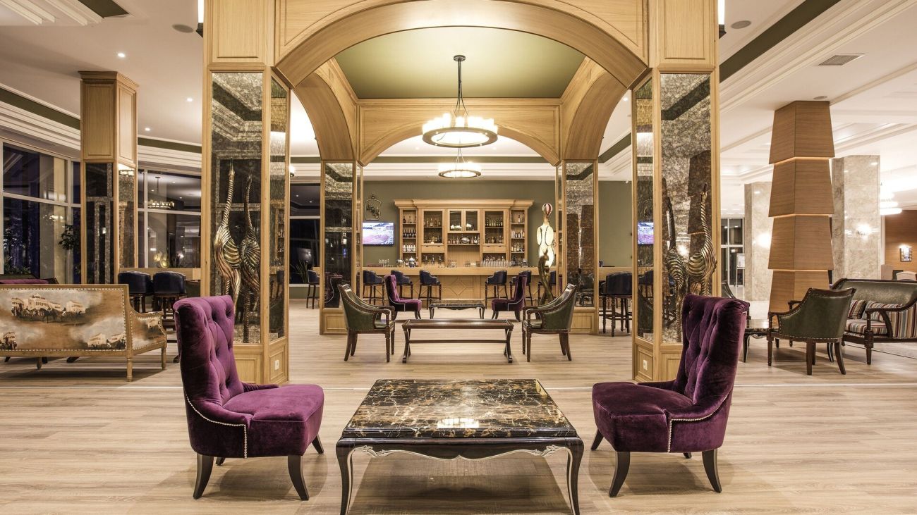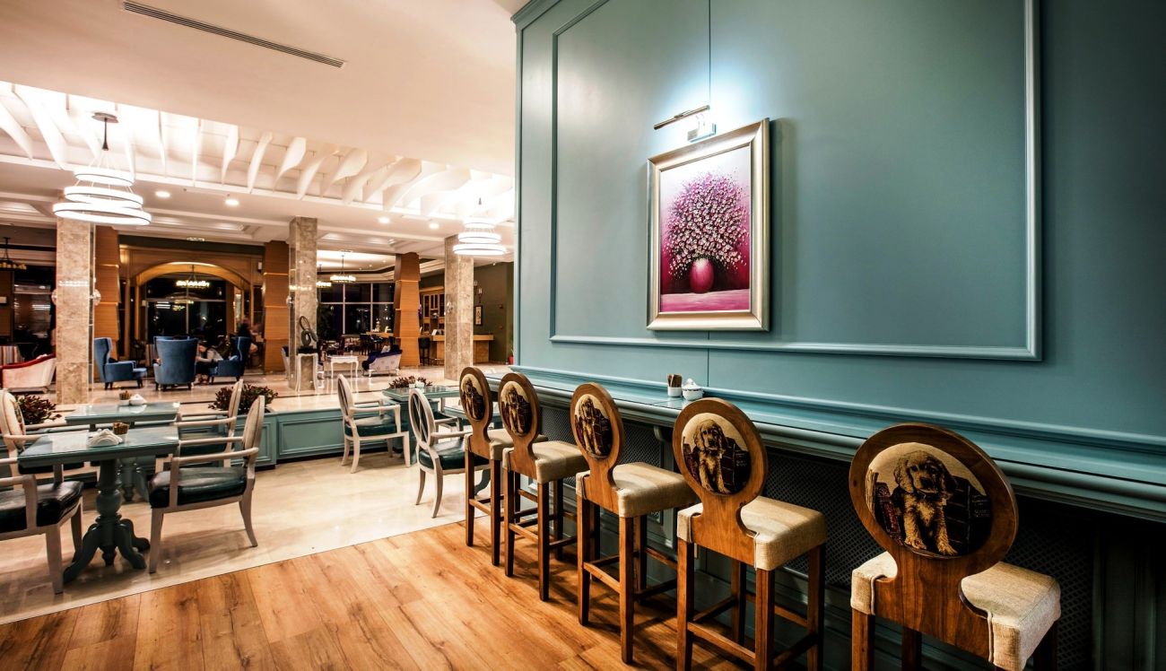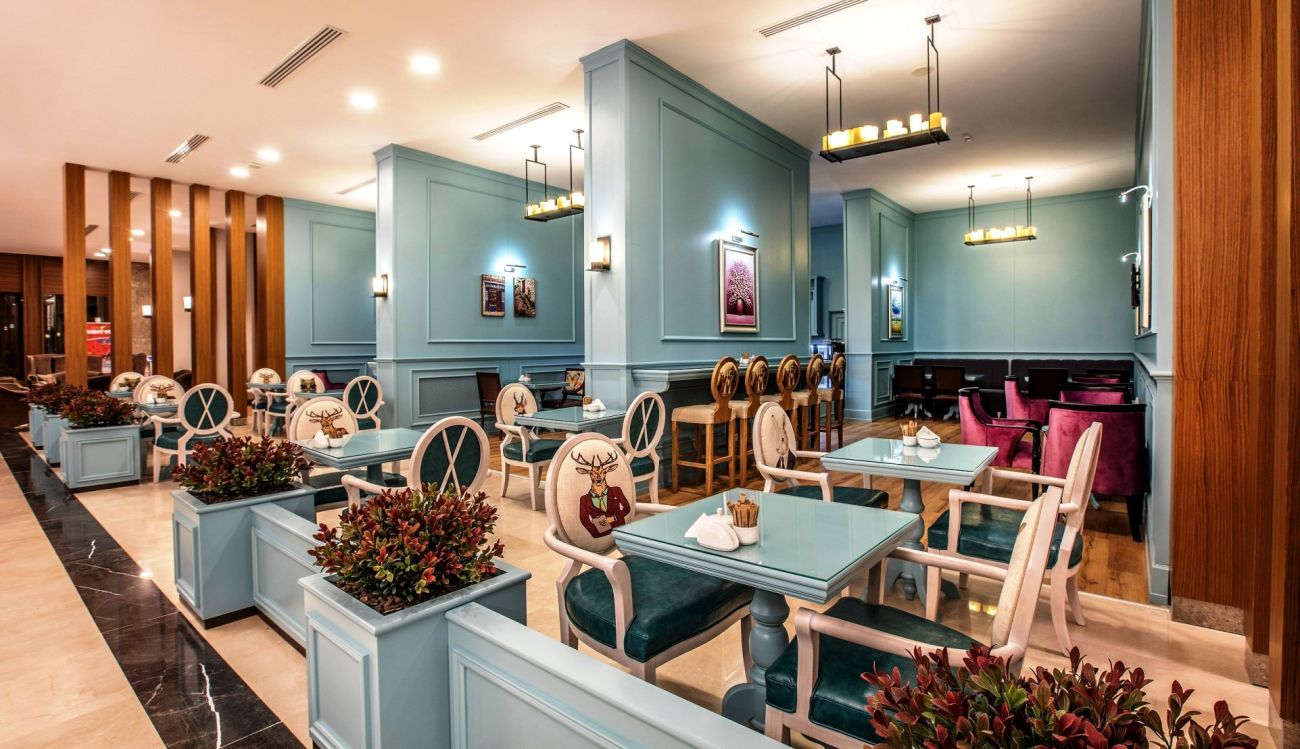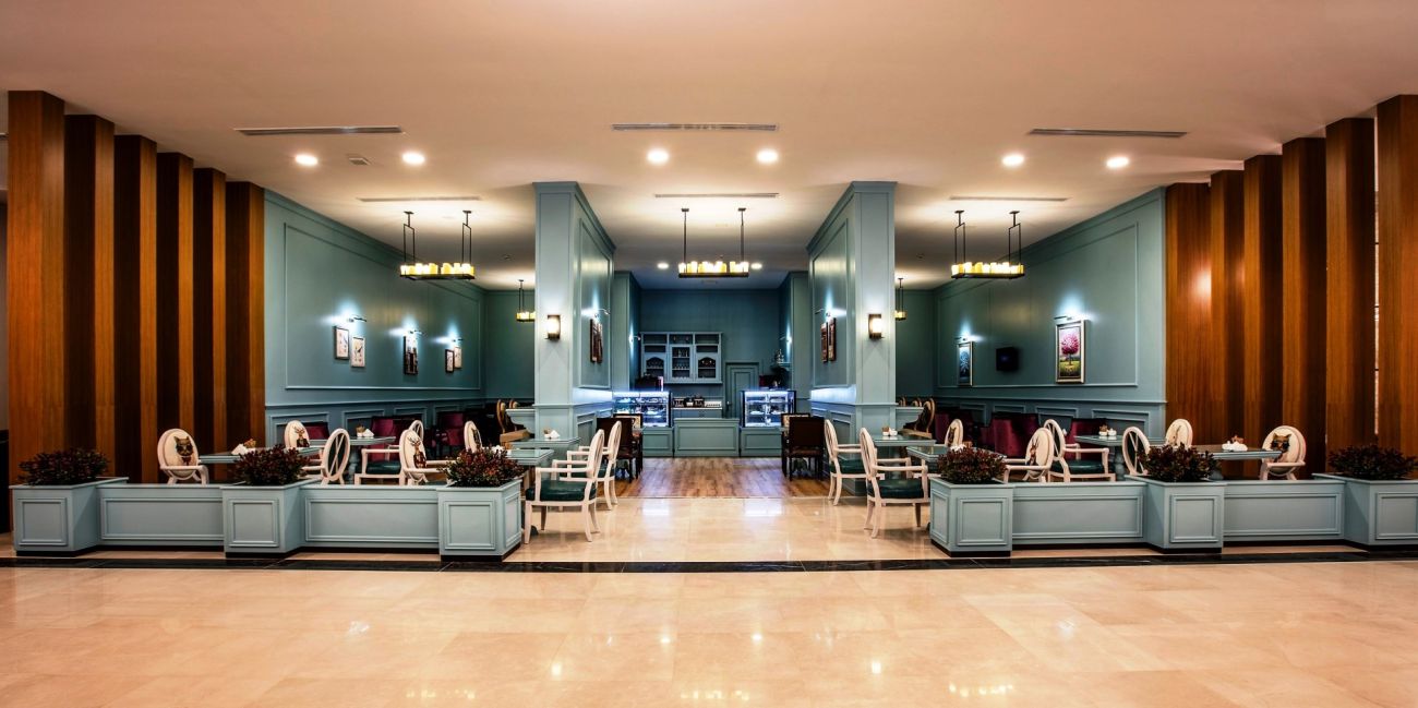 Разполага с основен ресторант, 3 а-ла-карт ресторанта (рибен, италиански, турски - с предварителна резервация; безплатно посещение на един от ресторантите при едноседмичен престой), снек ресторант, гьозлеме, сладкарница, лоби бар, бар басейн, релакс бар, снек бар, диско бар, общо 10 открити басейна със 7 водни пързалки, 1 основен открит басейн - 1200 м2, релакс басейн - 500 м2, закрит басейн - 140 м2 и детски басейн с водни пързалки - 200 м2.