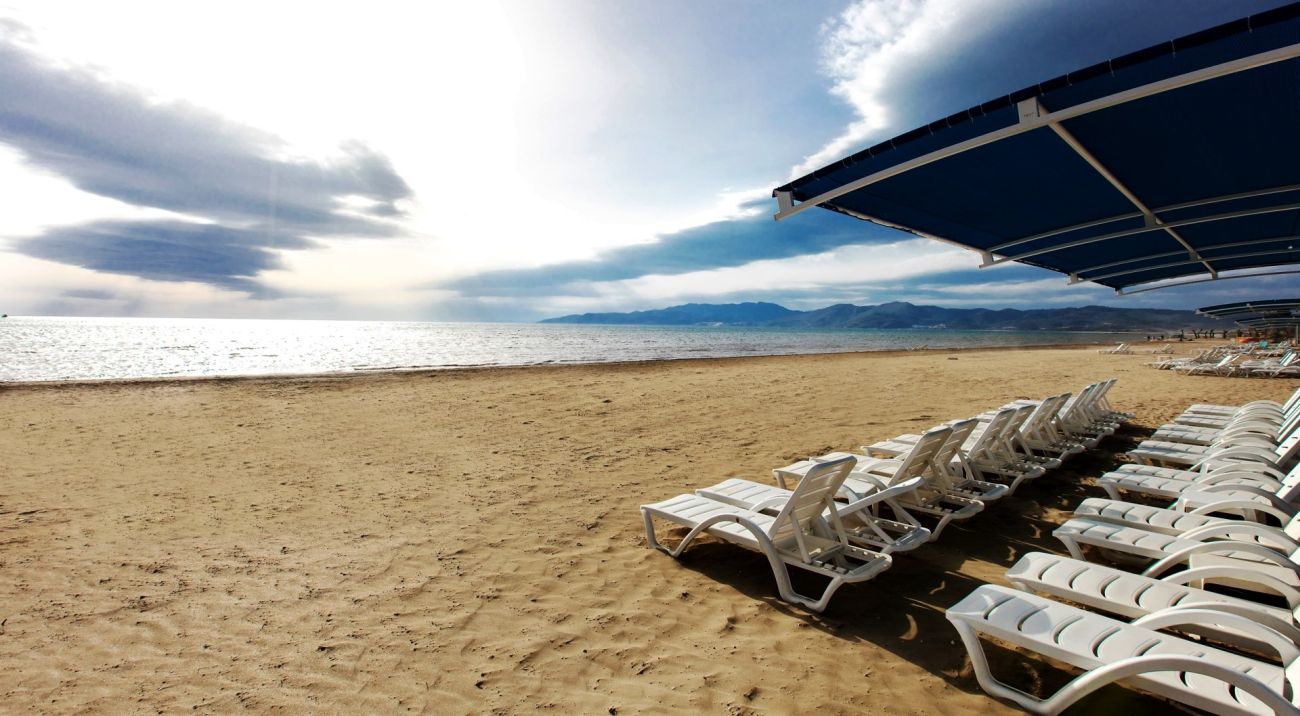 Хотелът се намира на първа линия. Непосредствено пред него се намира дългата и широката 500 м пясъчна ивица. Плажът е отличен със "син флаг". Чадъри, шезлонги, матраци се ползват безплатно. Плажните кърпи се ползват срещу депозит.