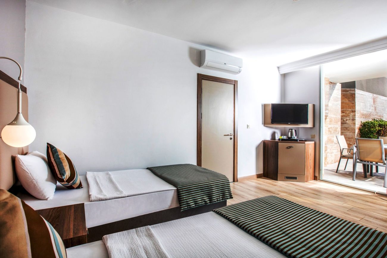 Фамилна стая "Swim-Up" с директен достъп до басейна - намират се в градинската част на комплекса, на първия етаж, в 4-етажни корпуси. Стаите са реновирани през 2016 г., подът е ламинат, банята е с душ. Състоят се от две помещения, които са разделени от врата. В едното помещение има спалня, а в другото две единични легла. Стаите имат балкон с изглед към басейните. Максимален капацитет 3 възрастни и 2 деца или 4 възрастни и 1 дете.