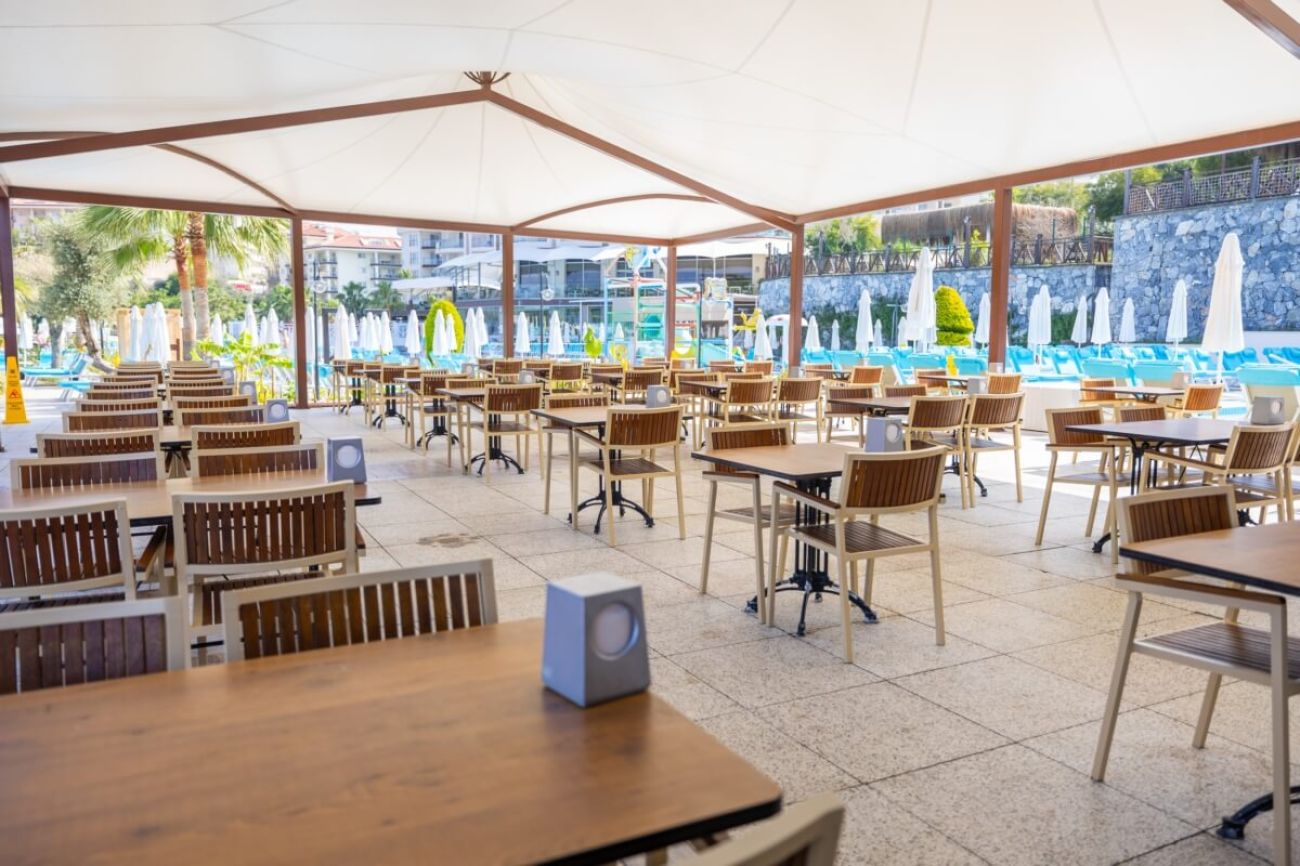 Хотелът разполага с основен ресторант, 3 а-ла-карт ресторанта (1 безплатно посещение за 1 от ресторантите при престой 7 нощувки, с предварителна резервация), 5 снек бара, 4 бара, 24 ч. рум сървис, дискотека, основен басейн (617 м²), басейн с джакузи (380 м²), закрит басейн (78 м²), детски басейн (63 м²), аквапарк за възрастни и аквапарк за деца с водни пързалки и допълнителни 2 басейна, амфитеатър, конферентна зала (230 м2), СПА център, паркинг, голф игрище, магазини, дневна и нощна анимация, шоу програми.