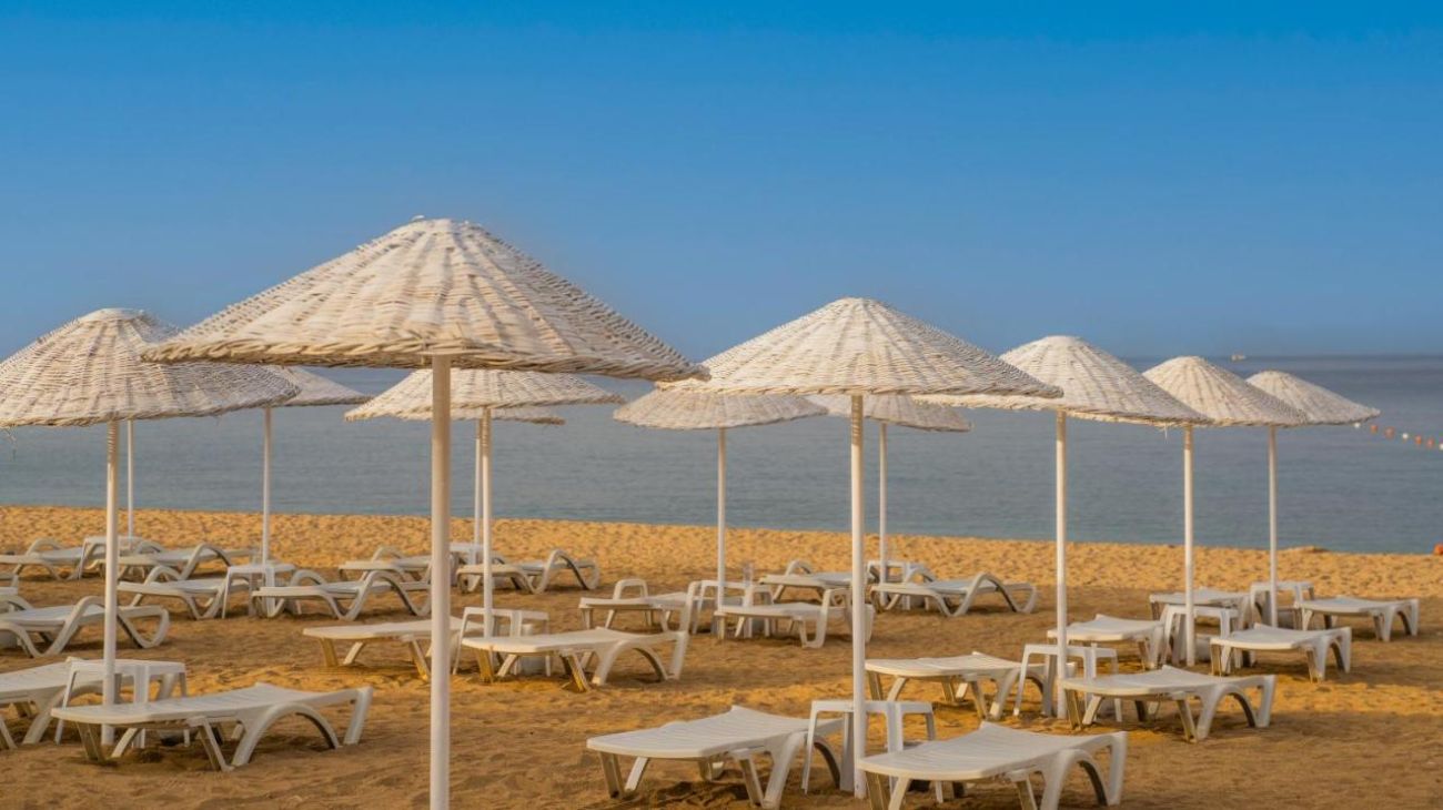 Собствен, пясъчно-чакълест. Чадъри и шезлонги на плажа и при басейна - безплатно, плажни кърпи - безплатно.