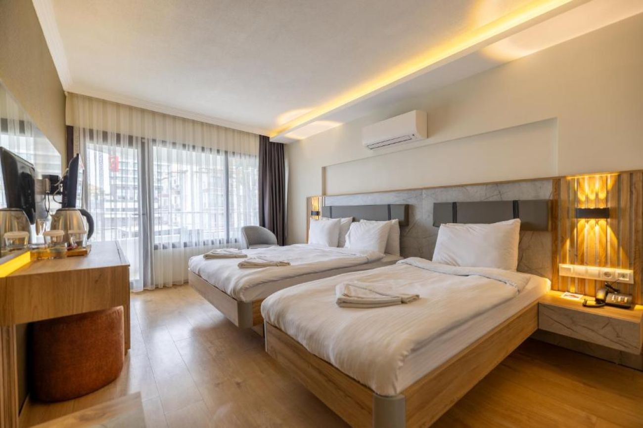 Хотелът се намира на 80 км. от летище Измир, на 130 км. от летище Милас, в центъра на Кушадасъ, на 600 метра от брега на морето. Основно реновиран през 2025 г.