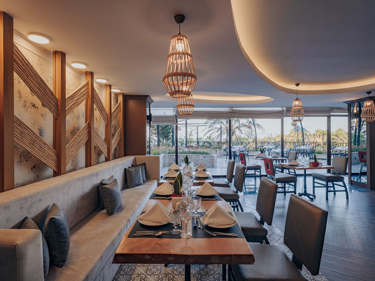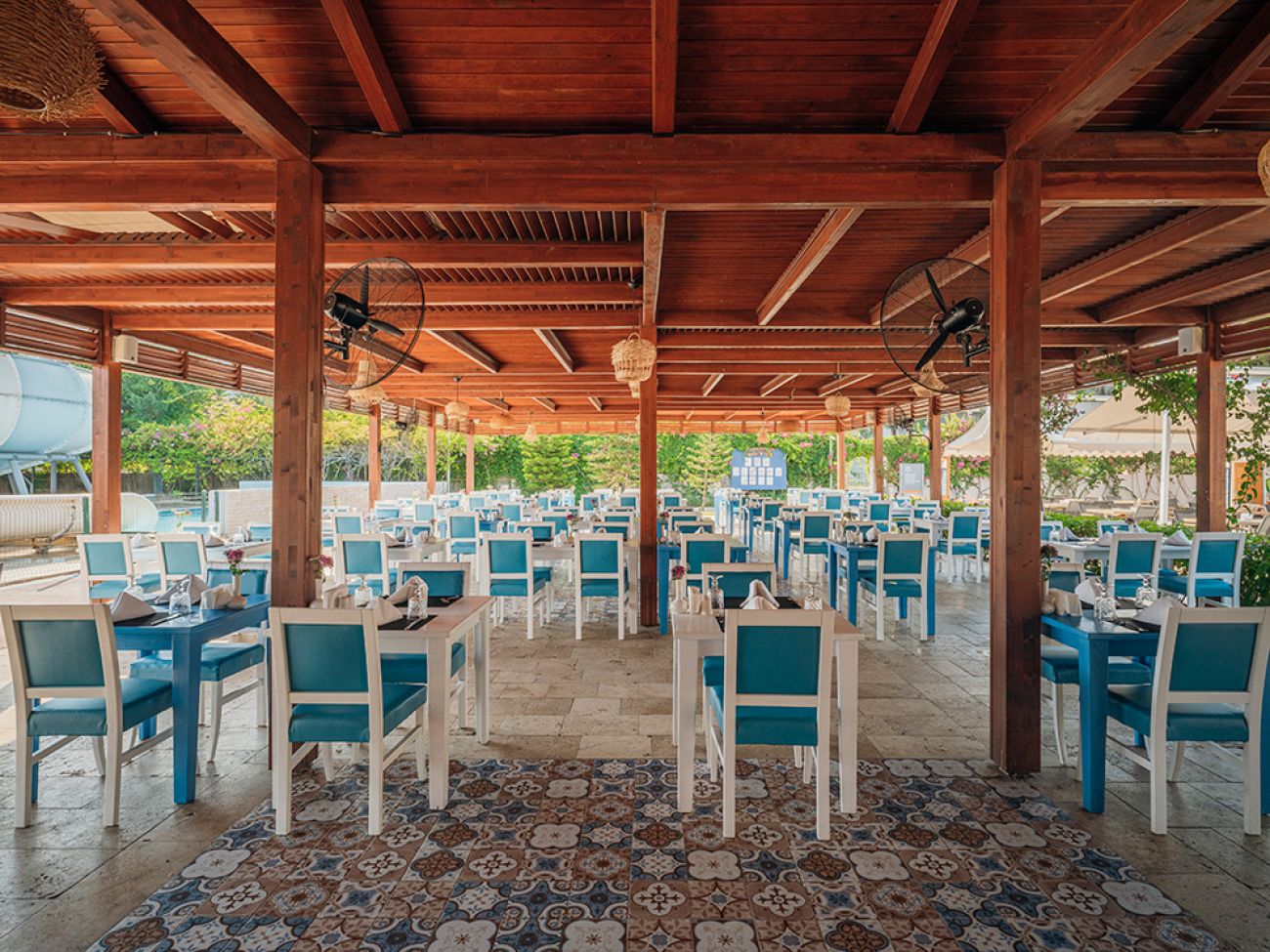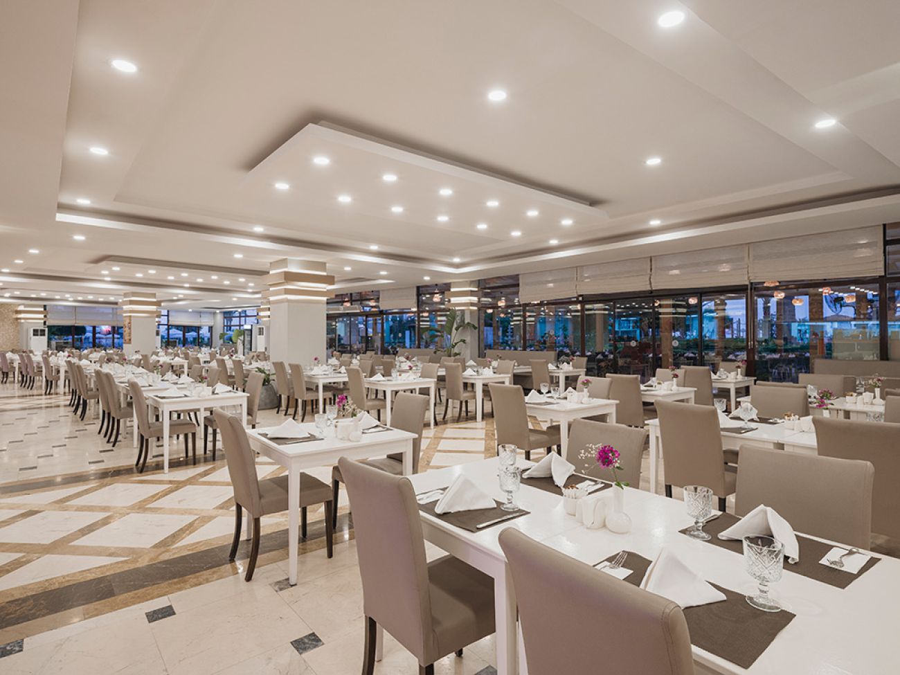 Основен ресторант, диетично меню, 3 а-ла-карт ресторанта (турски, рибен, италиански - с предварителна резервация, едно безплатно посещение на един ресторант за едноседмичен престой), 5 бара, 2 открити басейна, закрит басейн, аквапарк (6 водни пързалки), лекарски кабинет, спа-център, фризьорски салон, пералня, магазини, химическо чистен, 3 конферентни зали (100-400 души).