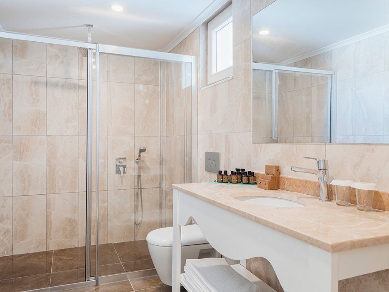 Стаите са оборудвани с вана, сешоар, централен климатик (в определени часове, в Club индивидуален), телевизор, мини-бар (вода и безалкохолни напитки се зареждат ежедневно, безплатно), сейф (срещу заплащане), подова настилка - паркет (Main Building), теракот (Club и Lyra Residence), балкон, почистване на стаята - ежедневно, смяна на спалното бельо - 3 пъти седмично, room service (24 часа, платено)