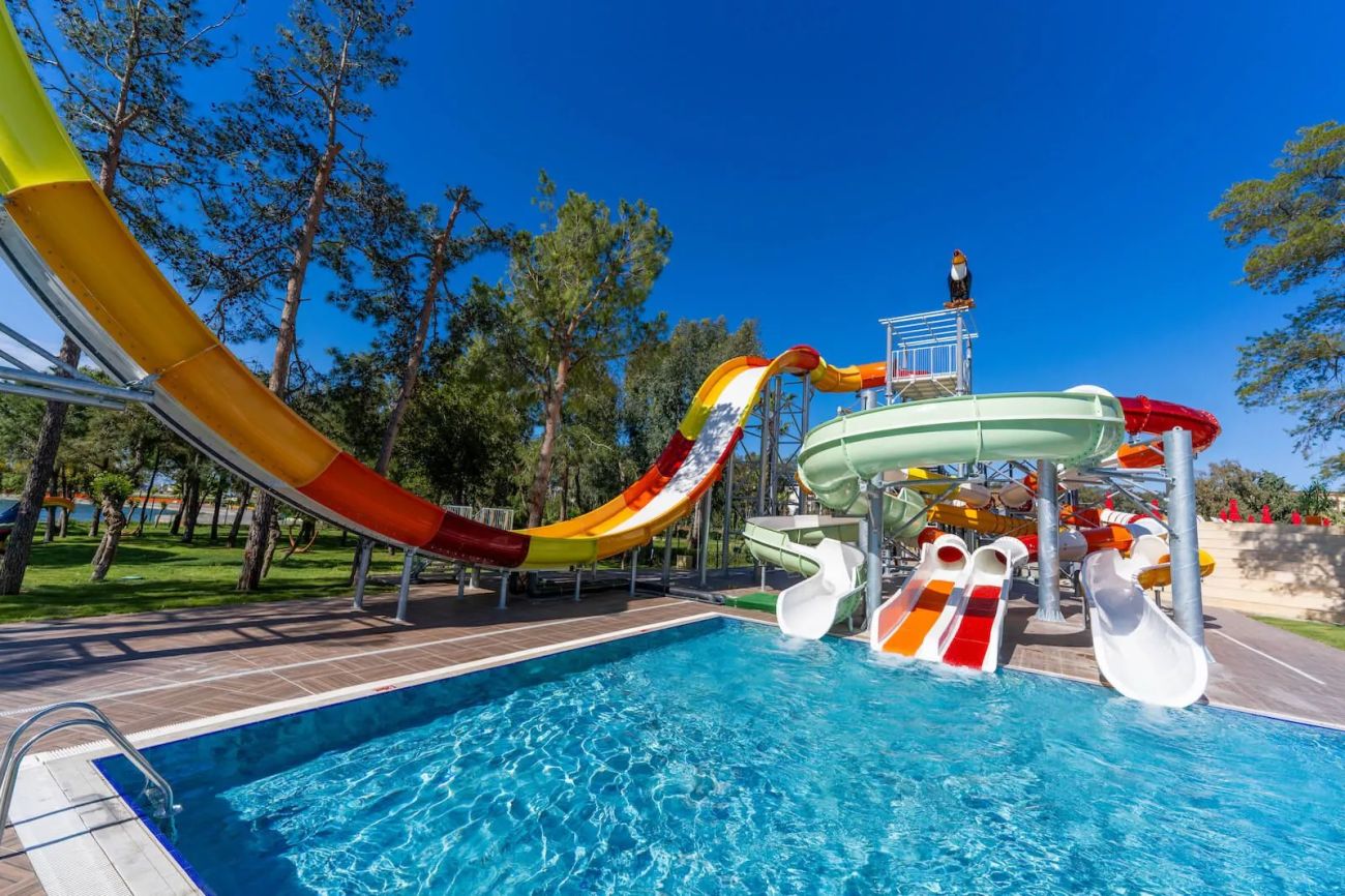 Детски открит басейн, 2 водни пързалки, мини клуб (4-6г.), миди клуб (7-10г.), макси клуб (11-17г., във висок сезон), детска площадка, анимация, детски клуб MISI, детски бюфет.