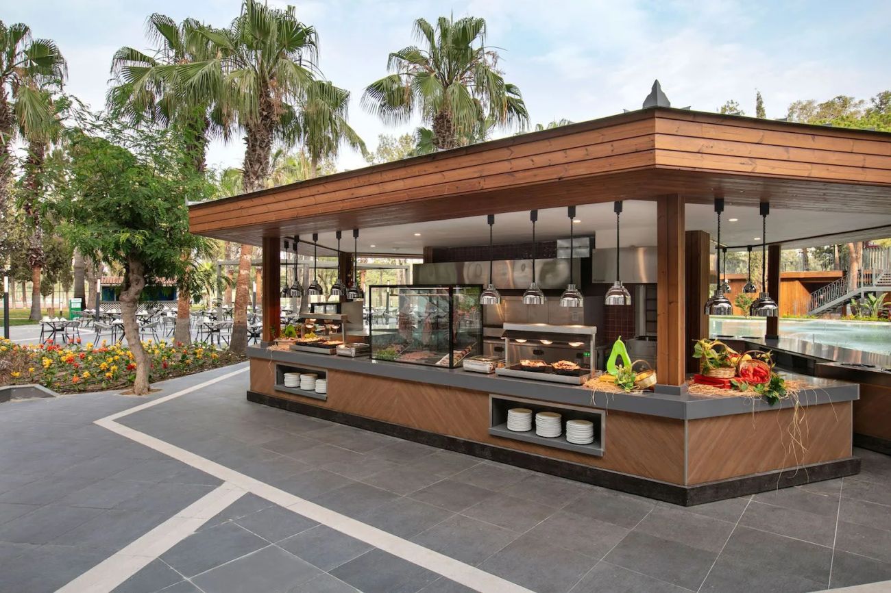Хотелът разполага с основен ресторант, 2 а-ла-карт ресторанта (турски и рибен – срещу заплащане), сладкарница, 7 бара, 4 открити и 1 закрит басейн, тенис корт, СПА център, конферентна зала, паркинг