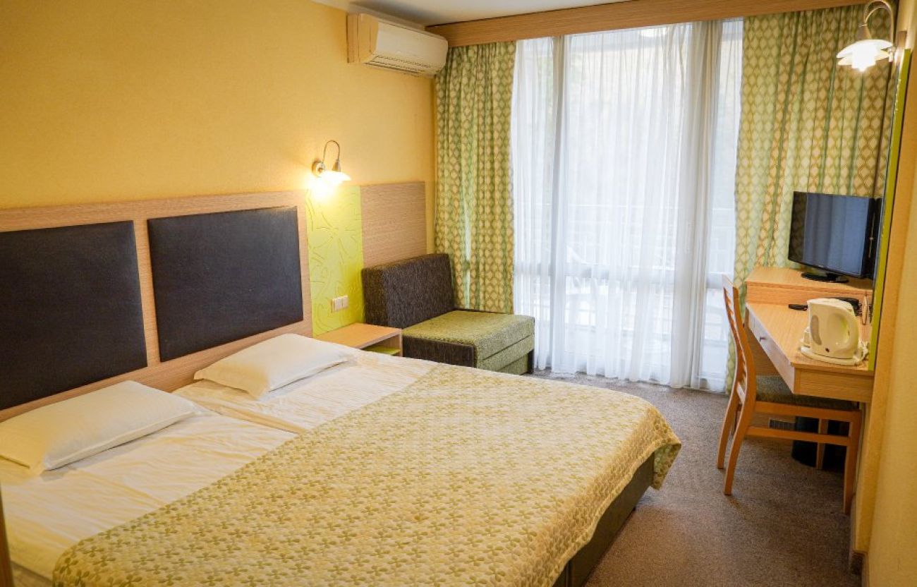 Стаи с парков изглед (около 15 кв.м.) - уютно и комфортно обзаведени. Всяка от тях разполага с две събрани стандартни (единични) легла и разтегателен фотьойл, което я прави подходяща за настаняване на максимум 3-ма възрастни или 2-ма възрастни и 1 дете. Някои от стаите са с френско легло, тип спалня или с двуетажни легла. Баните са с вана или душ кабина.