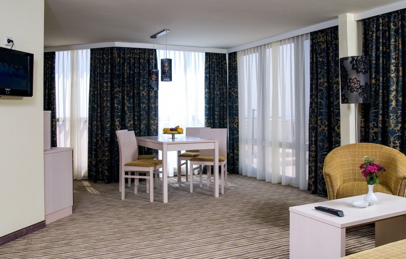 Гостите на хотела ползват 1 безплатен чадър и 2 шезлонга на стая на плажа и на басейна.