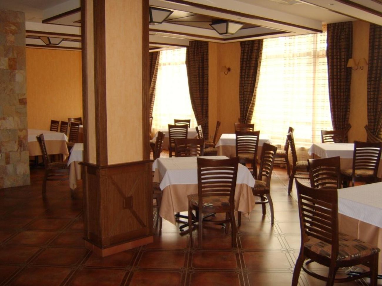 Лоби бар, ресторант, снек бар, релакс - център с голям закрит басейн с детска част и свързан с лятната градина на хотела, фитнес зала, сауна, както и различни видове масажи /предстои да се допълни със солариум, джакузи и турска баня/.
