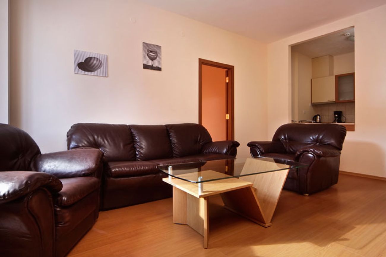 На ваше разположение са подземен гараж, открит охраняем паркинг, ски гардероб и разнообразни магазини.