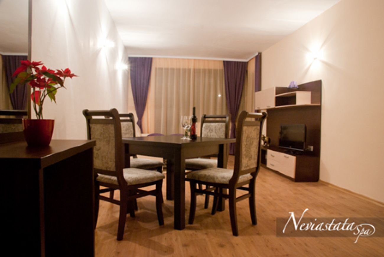 Апартхотел „Невястата” разполага с апартаменти с капацитет 2/4/6 човека. Апартаментите се състоят от всекидневна, спалня, антре, баня + WC, тераса. Спалнята е обзаведена с голямо легло за двама с възможност да се раздели на 2 единични легла, гардероб. Всекидневната разполага с ъглова разтегателна холна гарнитура с лежанка, холна маса, TV секция и телевизор LCD с безплатна сателитна телевизия, тоалетка с огледало и стол, двукрилен гардероб, куфарник. Антре – закачалки, огледало, куфарник. Банята има тоалетна, мивка с огледало, душ кабина, сешоар, козметика за баня, чехли, кърпи и хавлии.