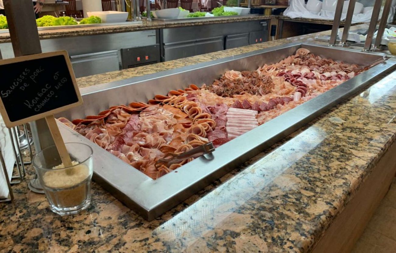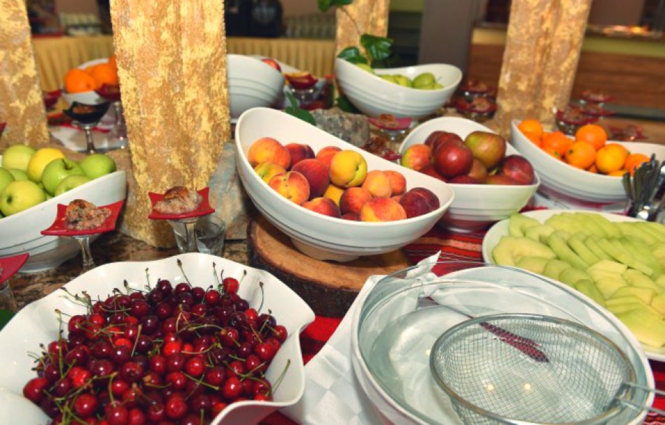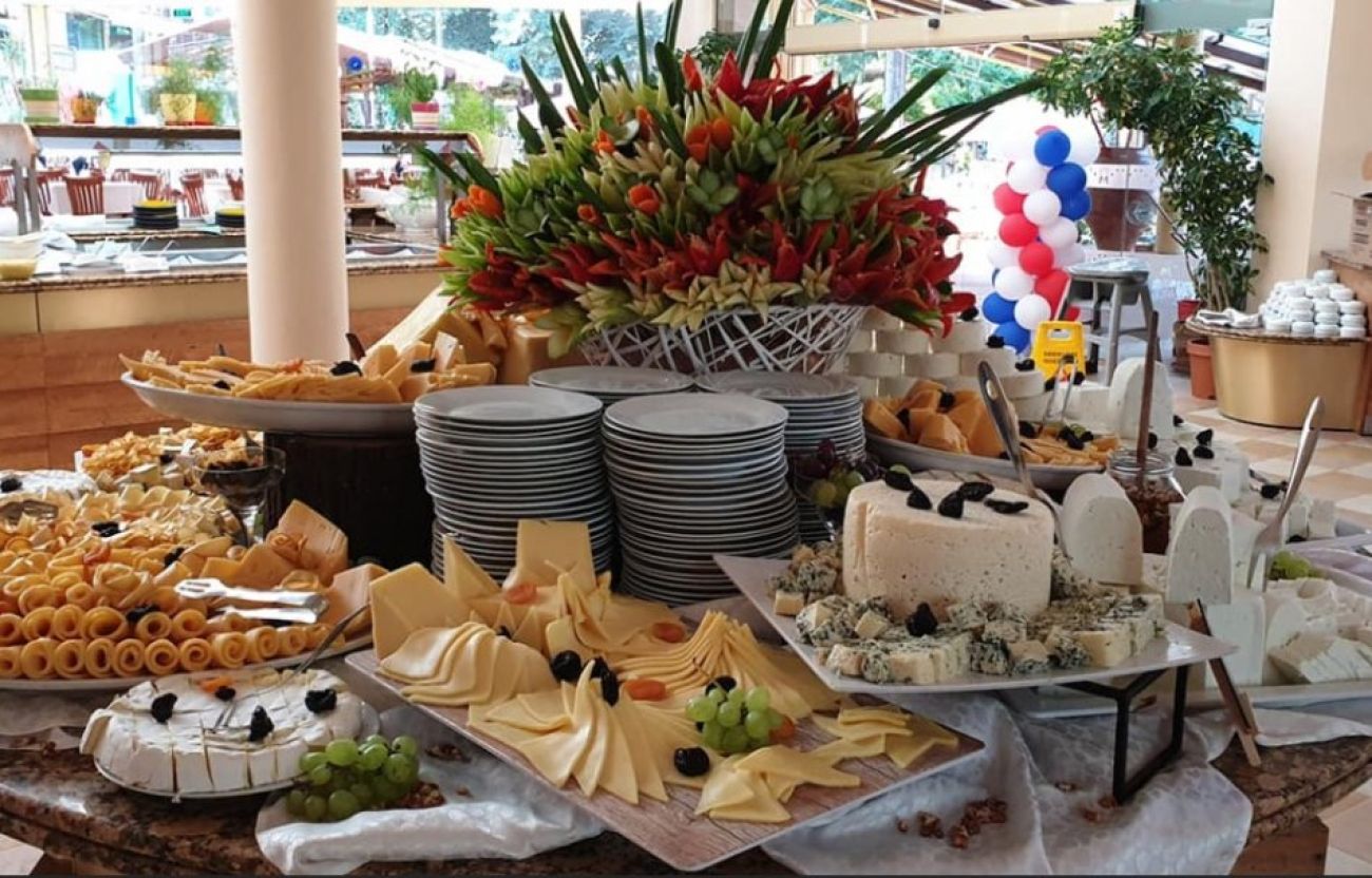 - Обяд на блок маса – 12:30 - 14:30 часа- интернационална кухня, включваща асортимент от пресни салати, супи, прясна риба, паста, ястия, приготвени пред вас, вегетариански бюфет, асортимент от френски десерти, плодове от местни малки производители, сладолед.
