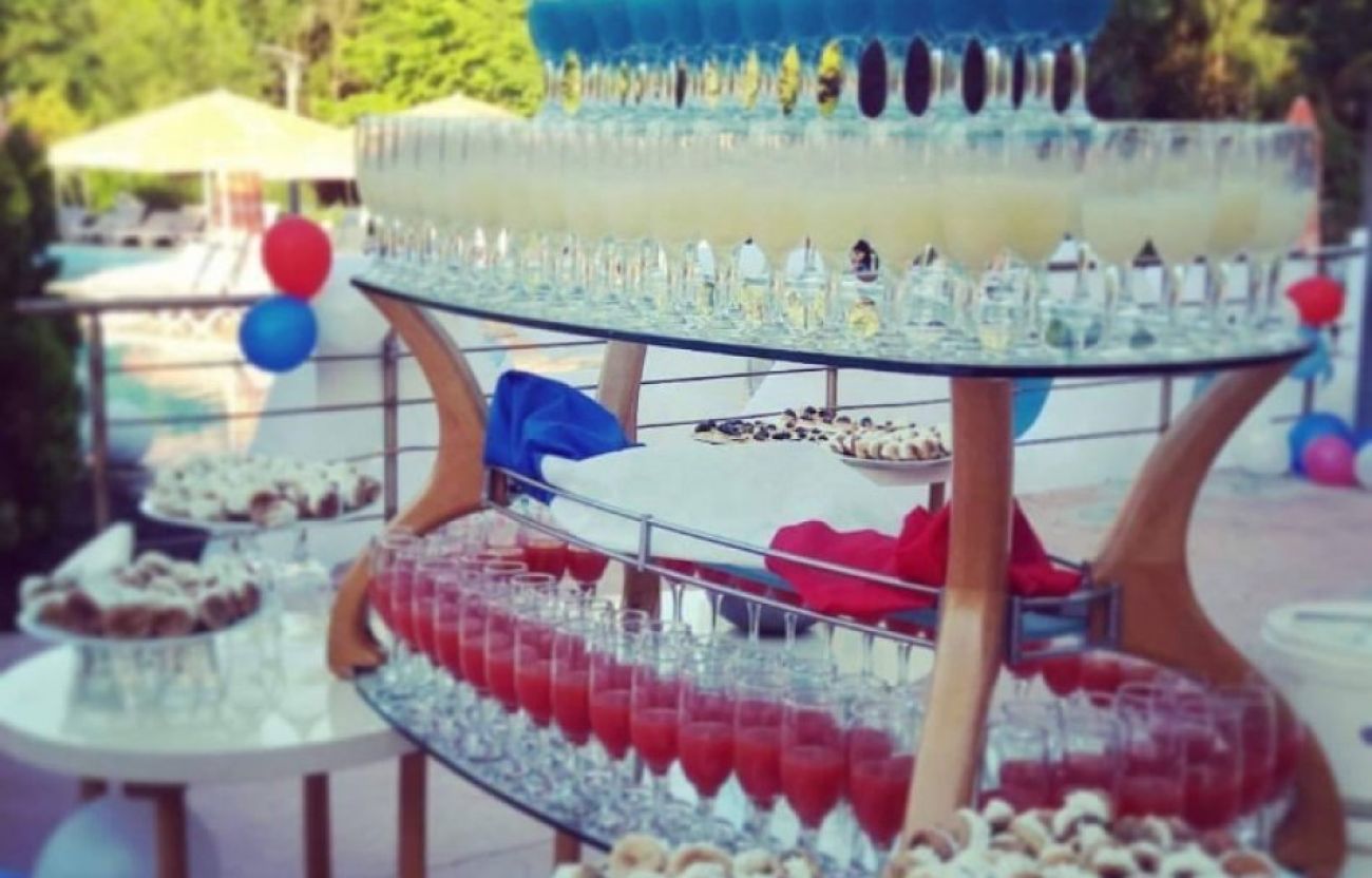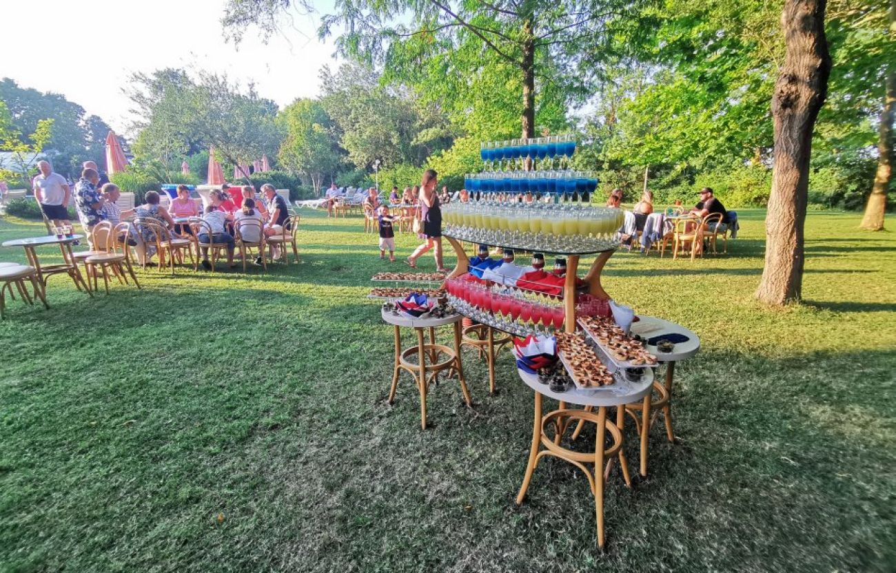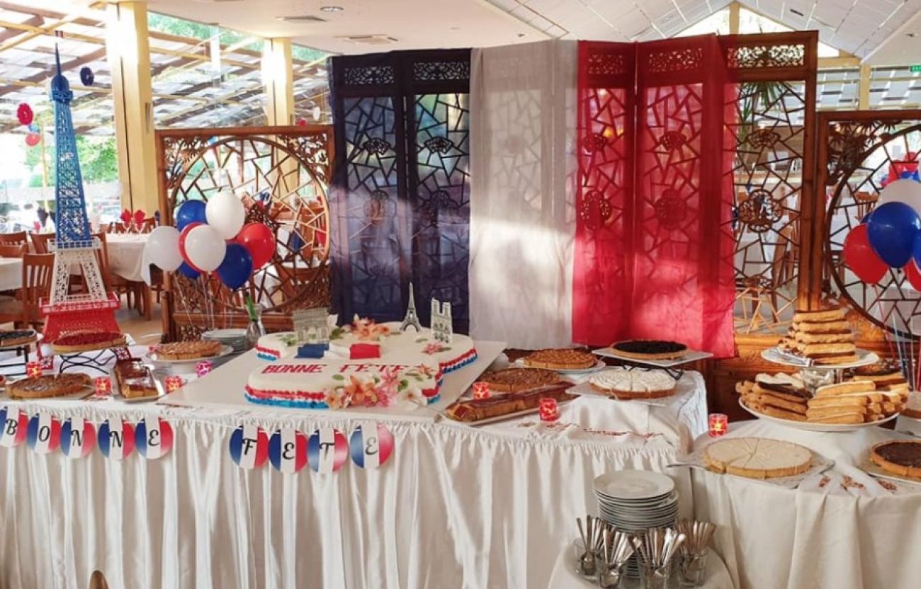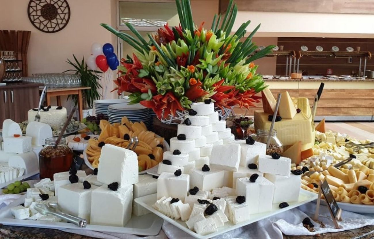 - Обяд на блок маса – 12:30 - 14:30 часа- интернационална кухня, включваща асортимент от пресни салати, супи, прясна риба, паста, ястия, приготвени пред вас, вегетариански бюфет, асортимент от френски десерти, плодове от местни малки производители, сладолед.