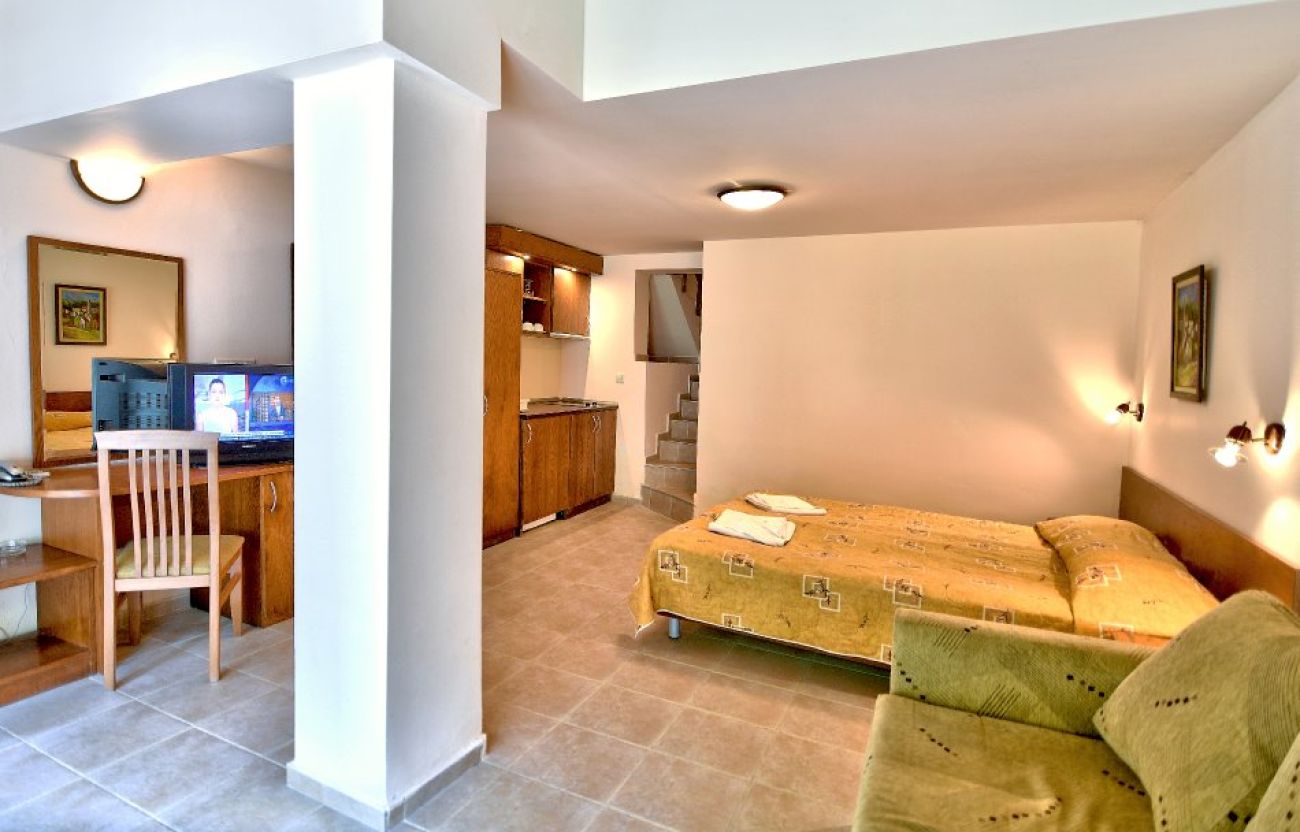 Първото ниво на вилите Ропотамо Mезонет 3* разполага с широка спалня, комфортен разтегаем диван и кухненски кът, оборудван с ел. кана, хладилник, котлони, аспирация, кухненска посуда, подходящ за затопляне на вода за приготвянето на детска храна или топла напитка. Вилата е с климатик. На междинно ниво са разположени широката и удобна баня и тоалетна. Второ ниво е обзаведено с две отделни легла и разтегателен фотьойл. Голямата веранда на вилите разкрива панорамна гледка към вековните дървета от парк Странджа. Бебешка кошара се предоставя безплатно при запитване.