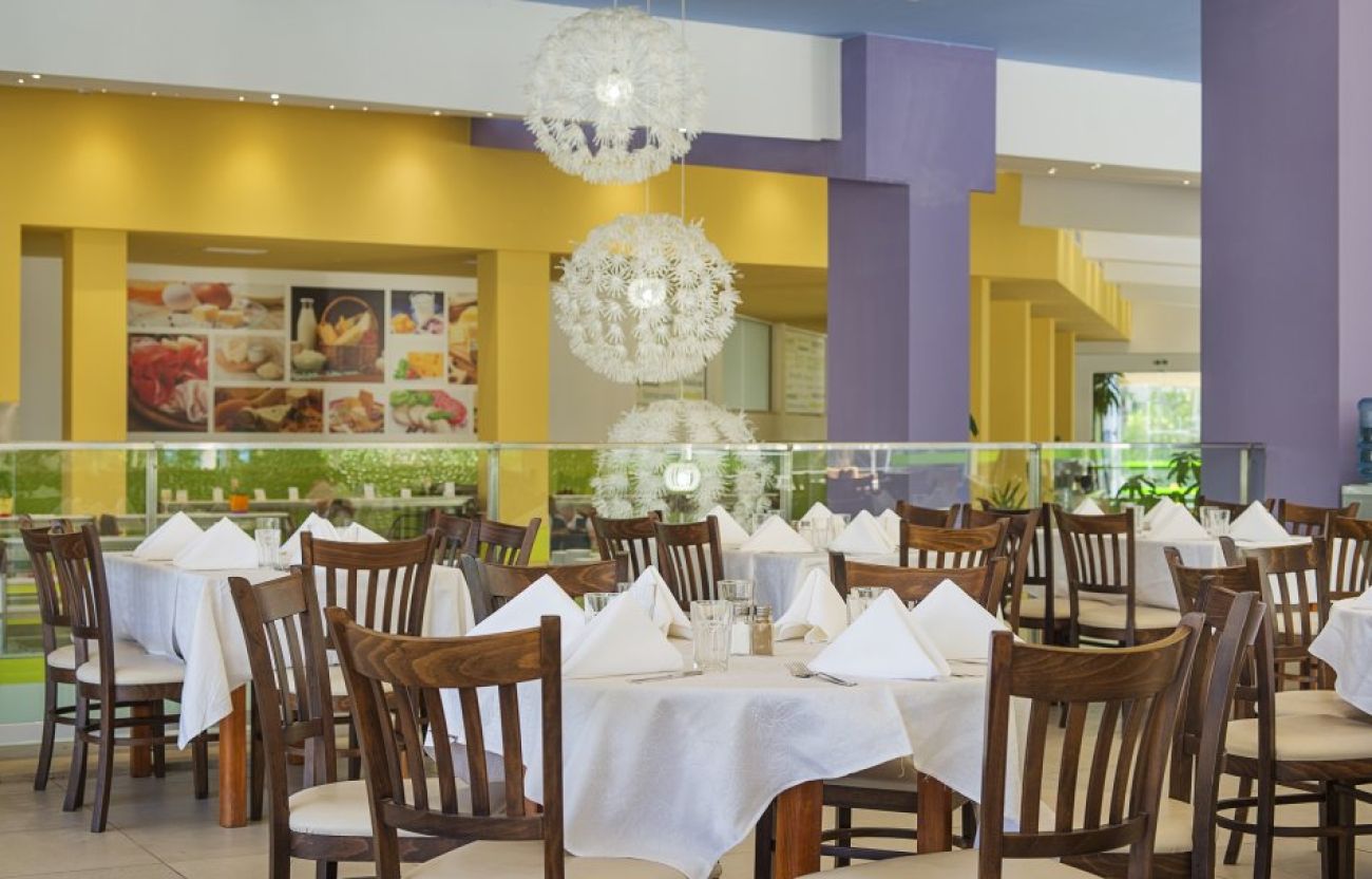 - 18:30 ч. – 21:30 ч. - вечеря на блок маса: съчетава вкусовете на европейската и световна кухня с предложение от богат салатен бар и прясно приготвени пред Вас риба, меса и ястия , включително вегетариански и диетични. Две тематични вечери в седмицата с вкусни десерти, свежи плодове от малки местни производители, асортимент сладолед, както и барбекю на дървени въглища 6 дни в седмицата.