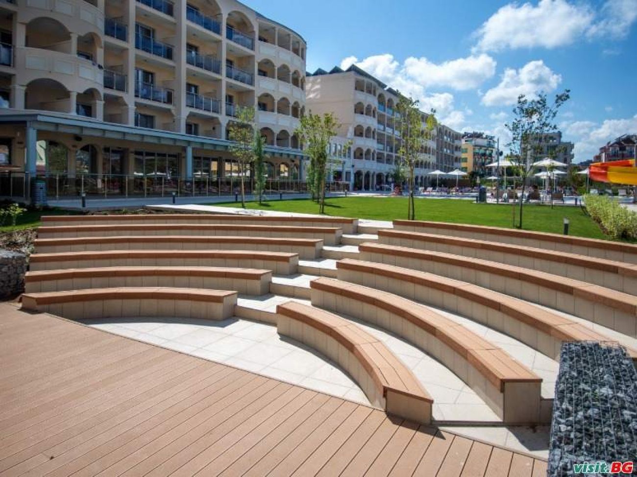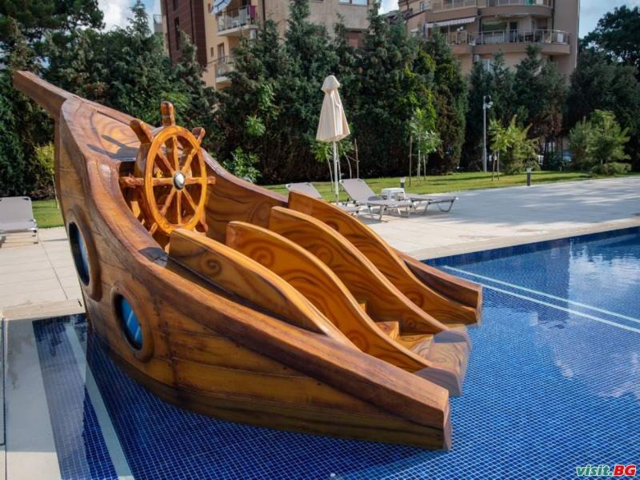шезлонги, шалтета и кърпи на басейните (кърпите се предоставят срещу депозит),