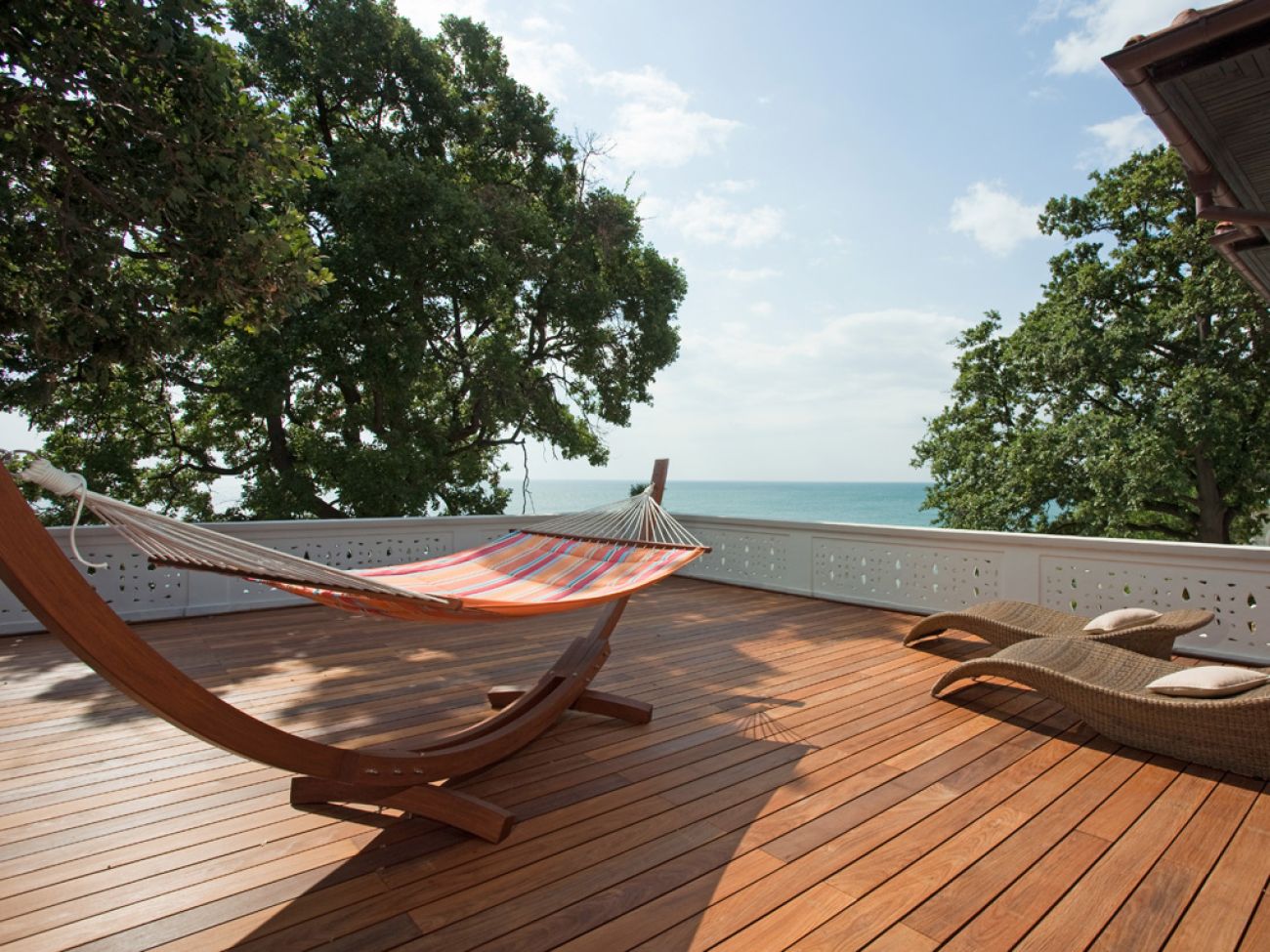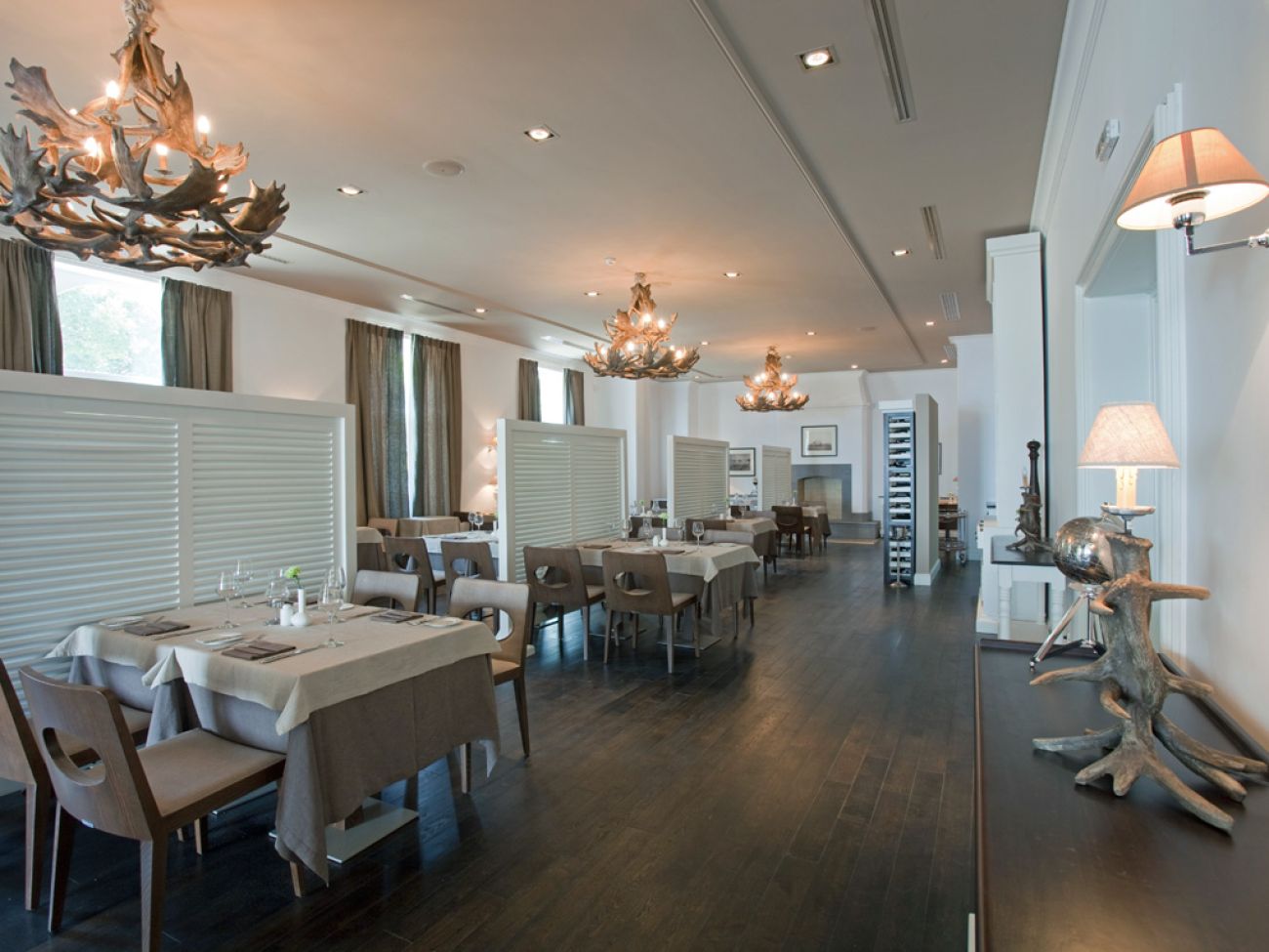 Ресторант с камина и открита тераса с прекрасна гледка към морето.