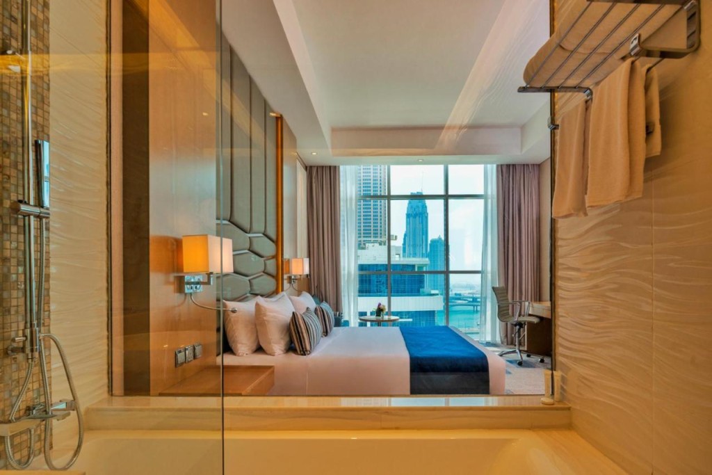 Хотел в района Business Bay в Дубай. Красив изглед от стаята и територията, висок стандарт на обслужване.