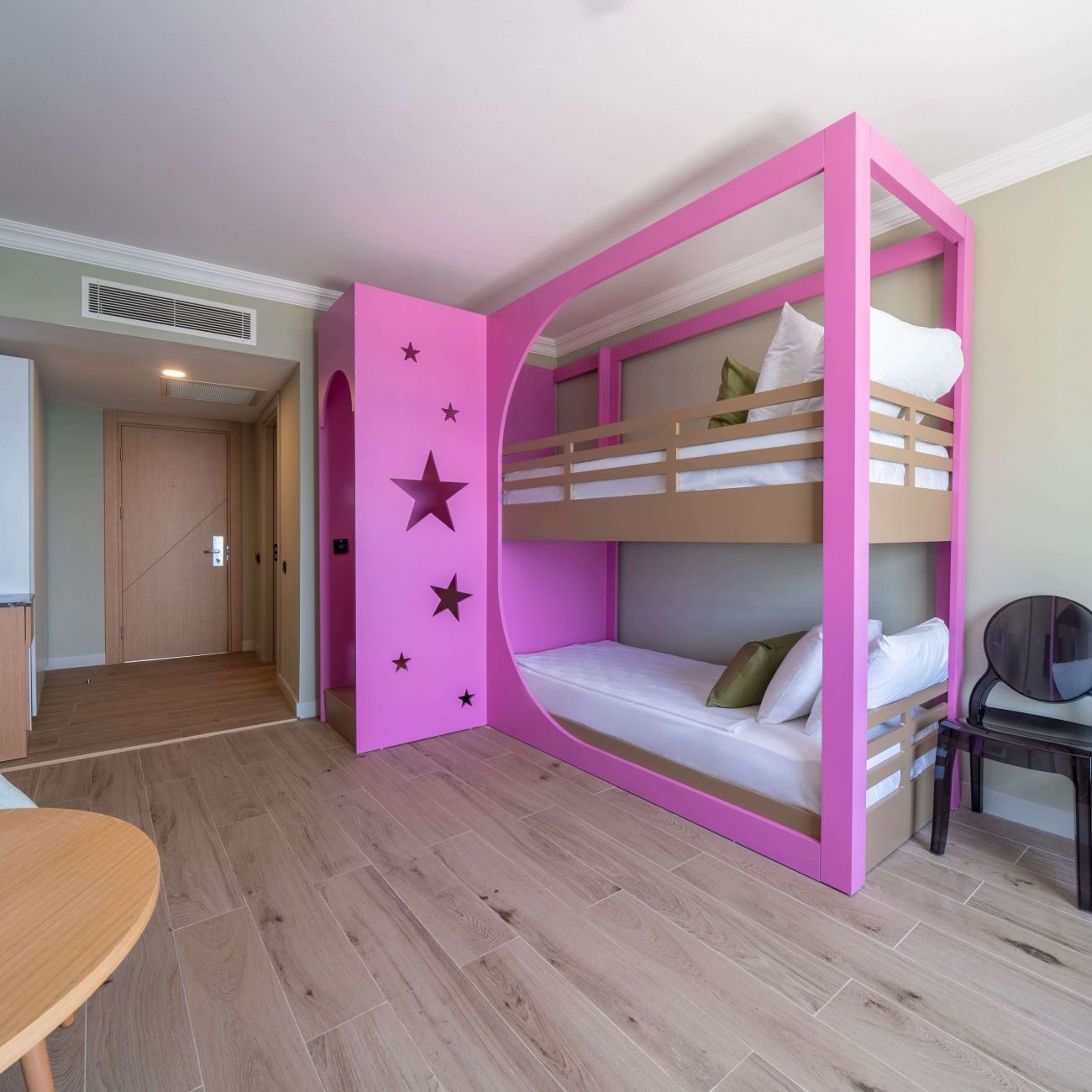 Хотелът разполага с общо 251 стаи, от които 66 Standart room garden view (25 - 30 m²), 138 Standart room sea view (20-30 m²), 7 Promo room (20-30 m²), 10 Junior suit (спалня и всекидневна, 50 m²) и 29 Family room (2 спални, 2 бани, 50 m²), разположени в 6-етажна основна сграда Main building. Всички стаи са оборудвани с климатик, телефон, телевизор, баня с душ, сешоар, сет за кафе/чай, мини бар ( eжедневно зареждане с вода и безалкохолни напитки), сейф (безплатно), Wi-Fi, балкон в някои от стаите. Почистване на стаите - всеки ден, смяна на спалното бельо - 2 пъти в седмицата.