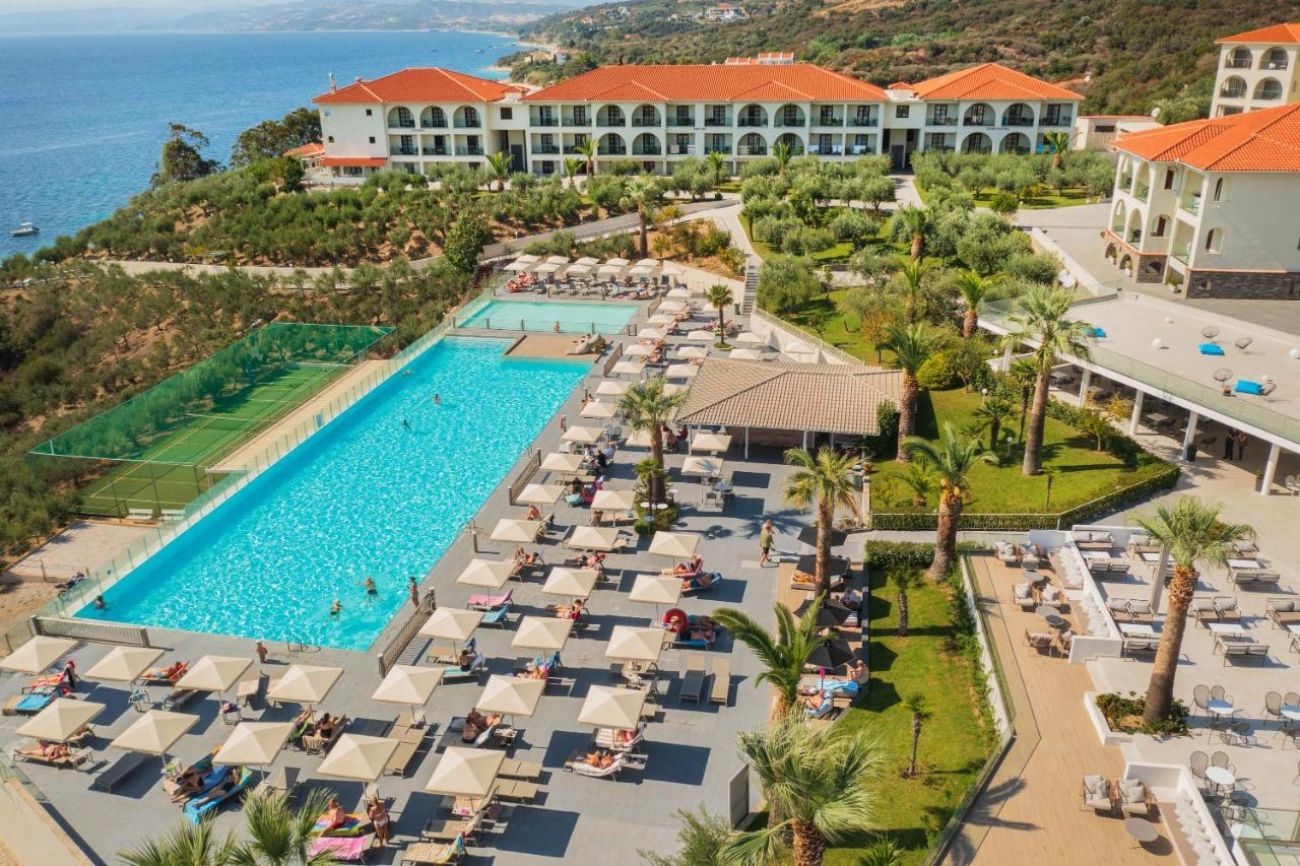 Хотелът, с обща площ от 13 000 кв.м., е разположен на полуостров Атон, на 4 километра от град Урануполи, на 8 километра от Йерисос, на 125 километра от летище "Македония" в град Солун. Изцяло реновиран през 2010 година и частично реновиран през 2012 година.