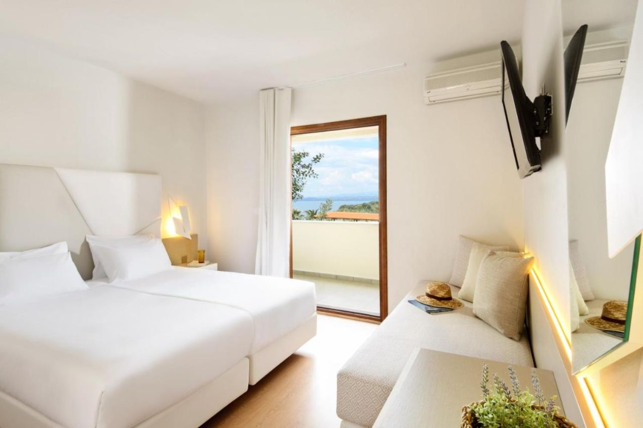 Family 2-Brooms Първата стая е обзаведена с 2 единични легла, диван и кухненски бокс, а отделената с врата спалня разполага с двойно легло, баня с вана, изглед към морето или градината.