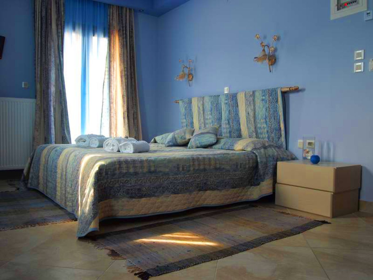 Състои се от триетажна сграда и разполага с общо 12 стаи: Double Rooms GV (~20-22 кв.м), Double Rooms SV (~25 кв.м), Doubles Superior (~30-35 кв.м), Studios SV (~45 кв.м). В стаите на разположение са: климатик, телевизор, душ, сешоар, хладилник, балкон, безплатен достъп до WI-FI.