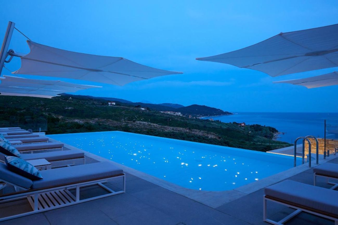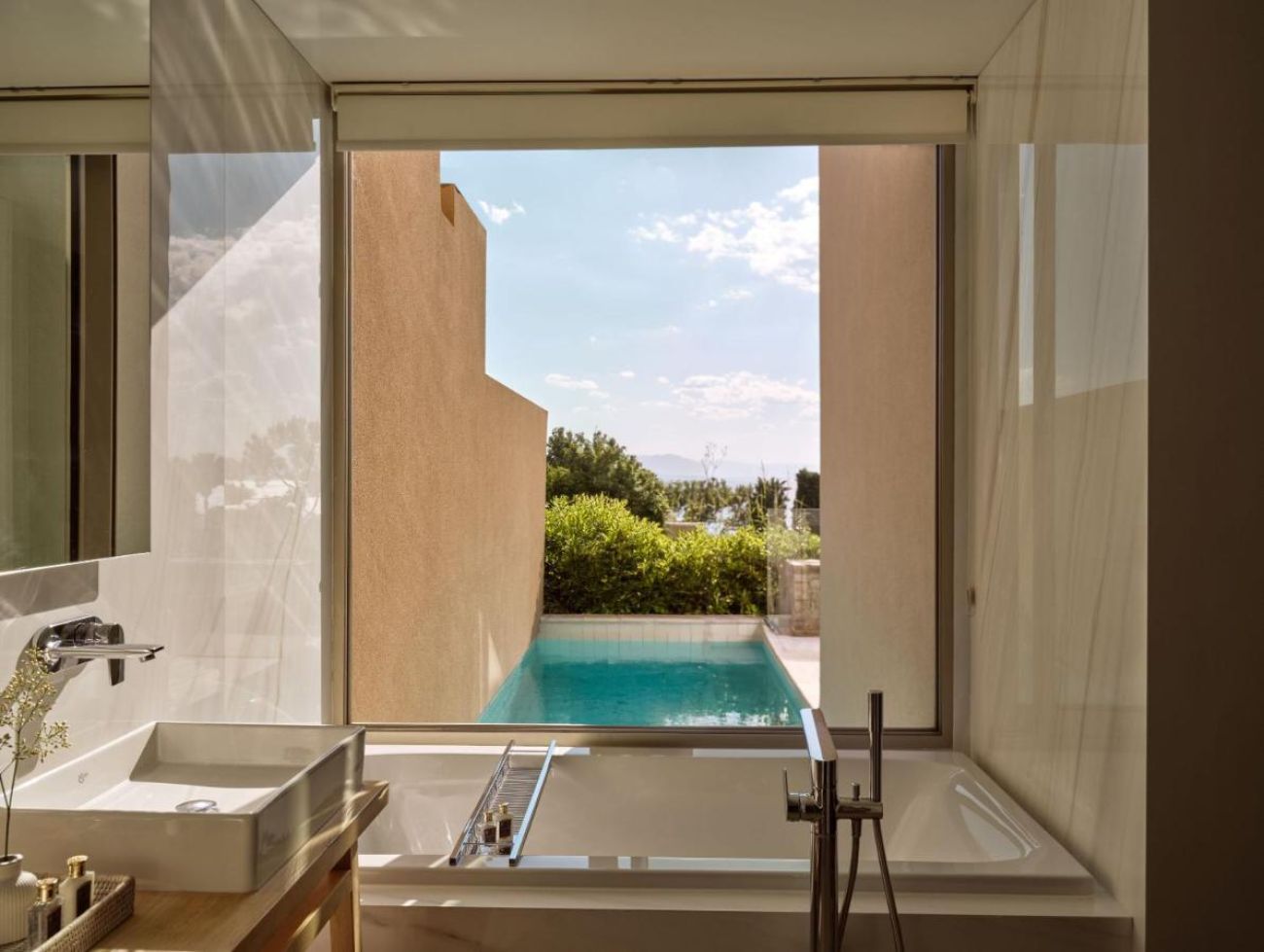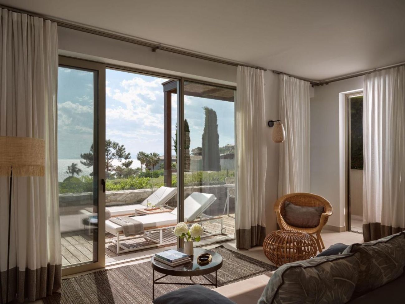 Villas Junior Ocean Pool SV Private Garden Всекидневна зона, диван, спалня, собствен отопляем басейн със сладка вода., собствена детска градина.